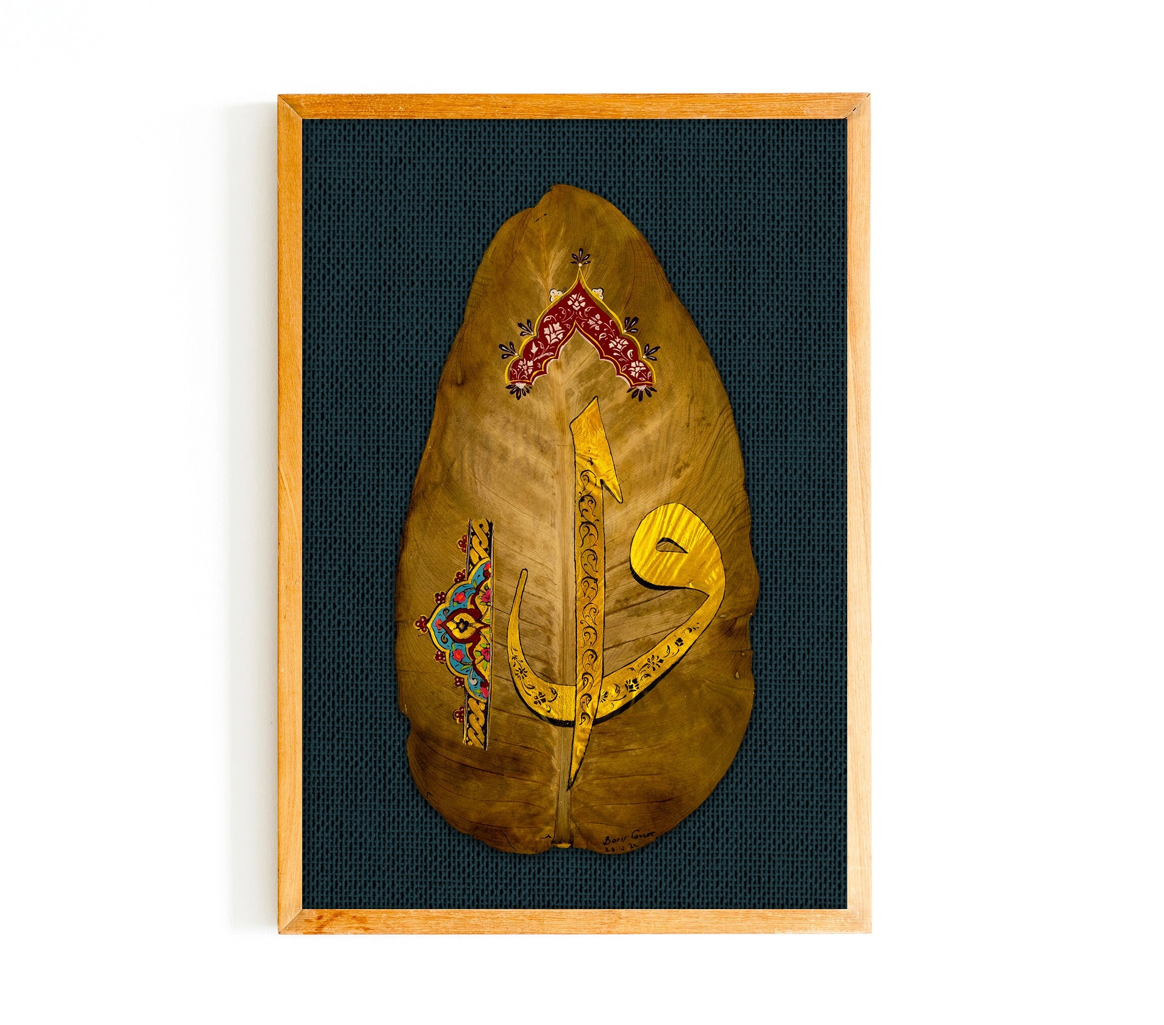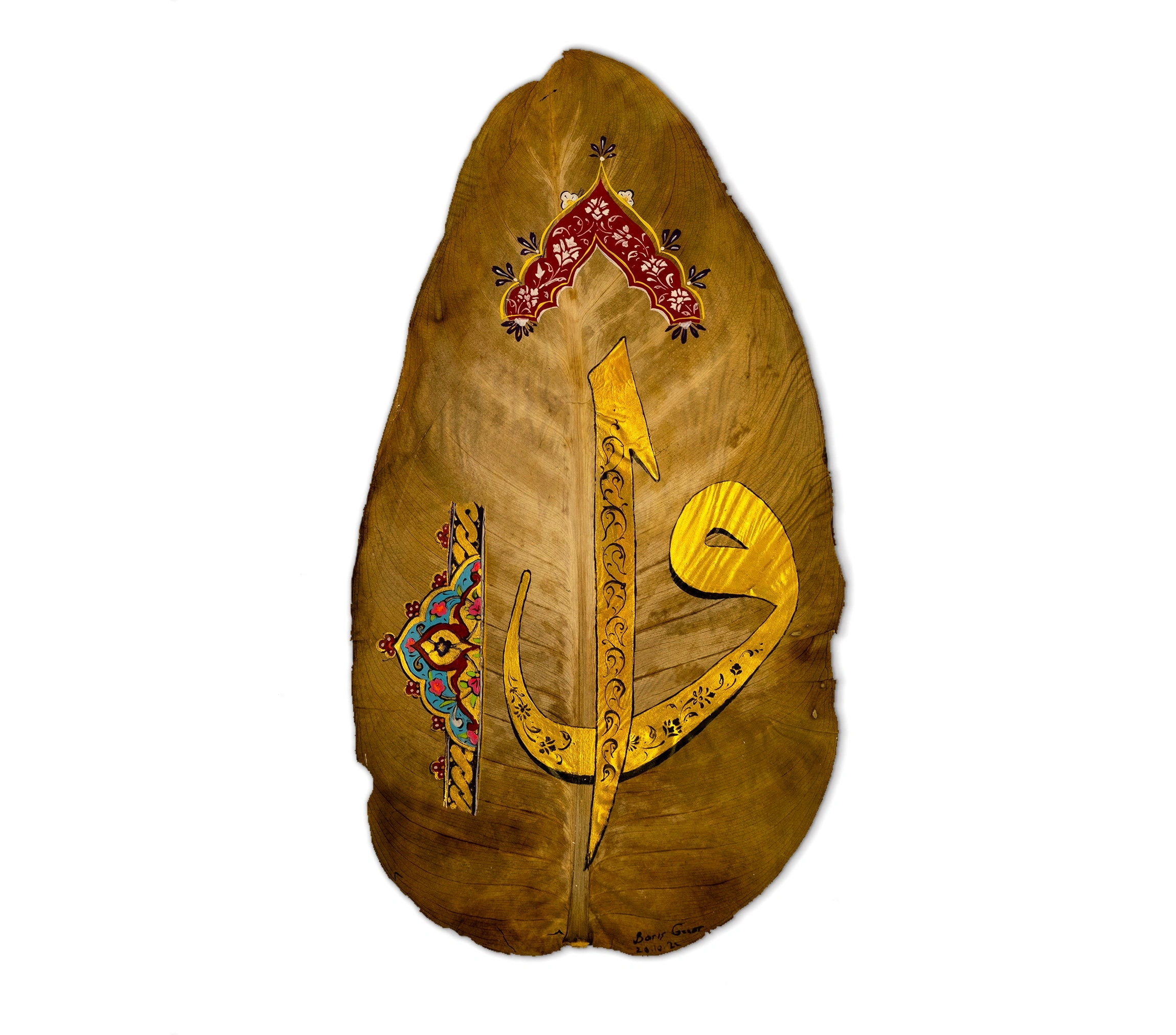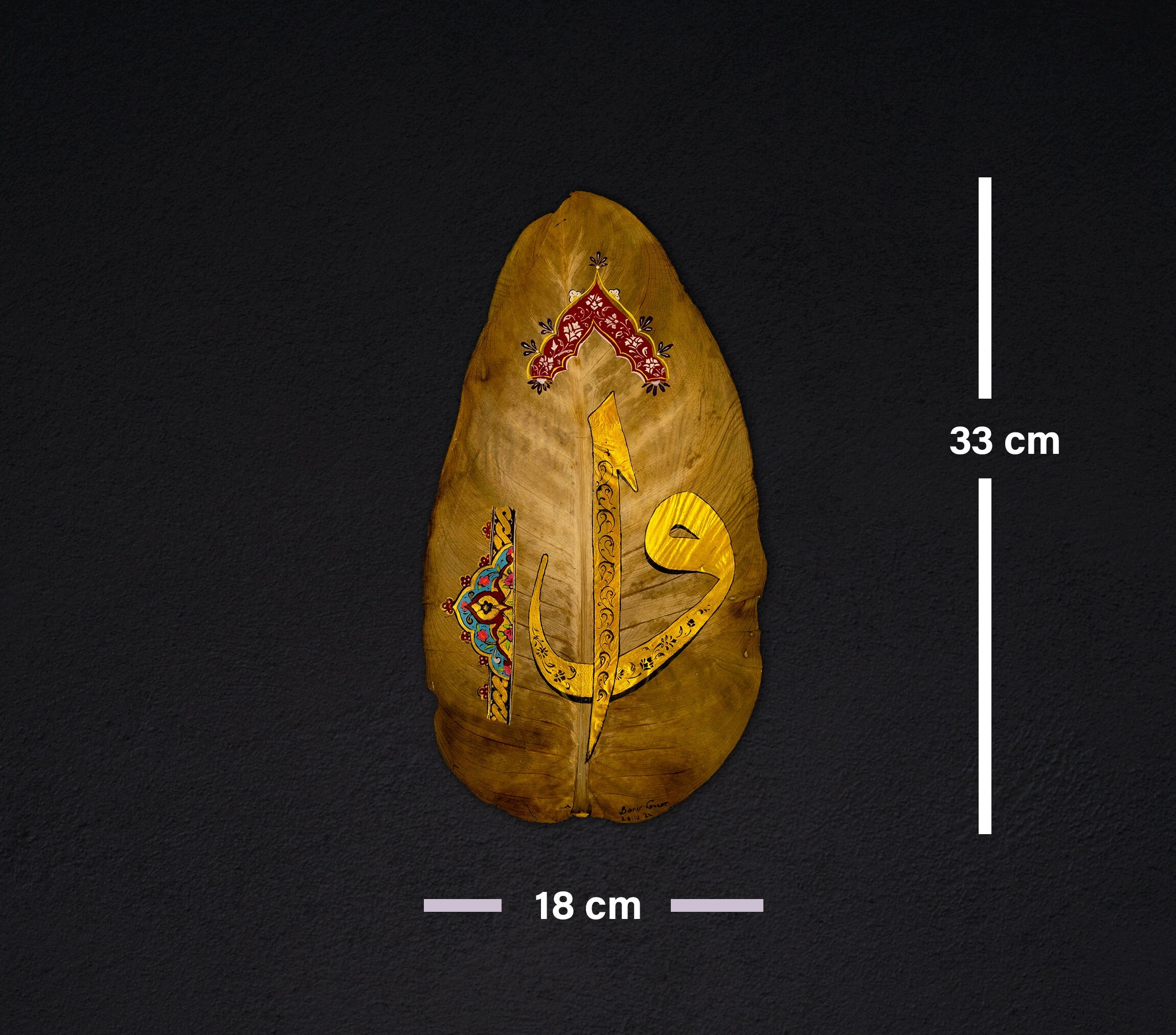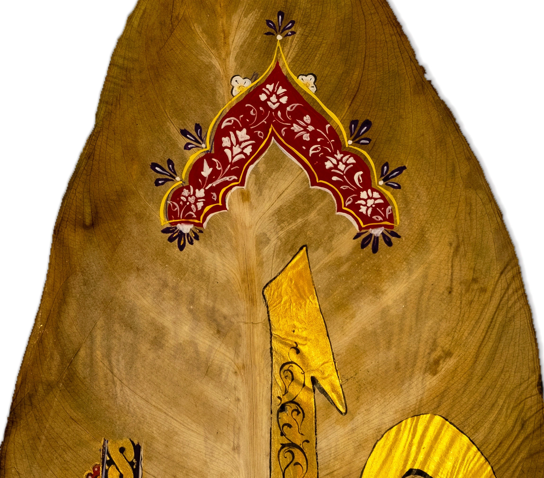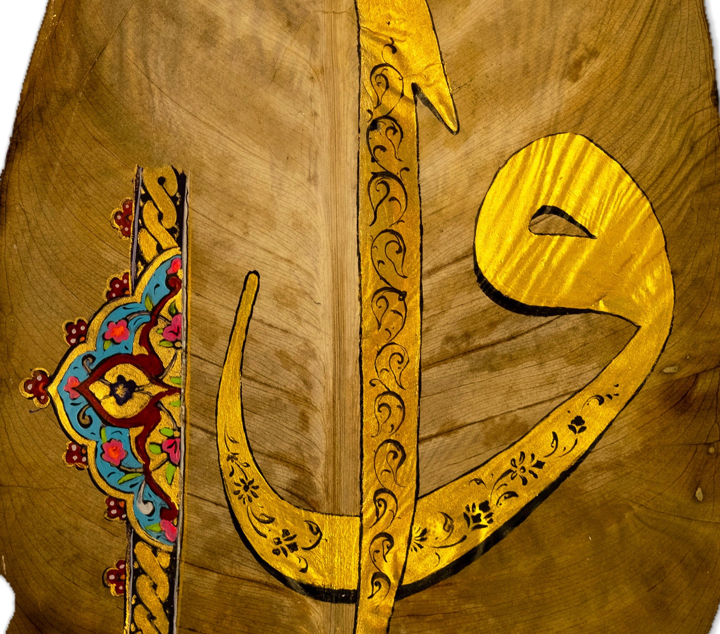 Kauçuk Yaprağı Üzerine Elif Vav Tezhip Sanatı 18x33cm