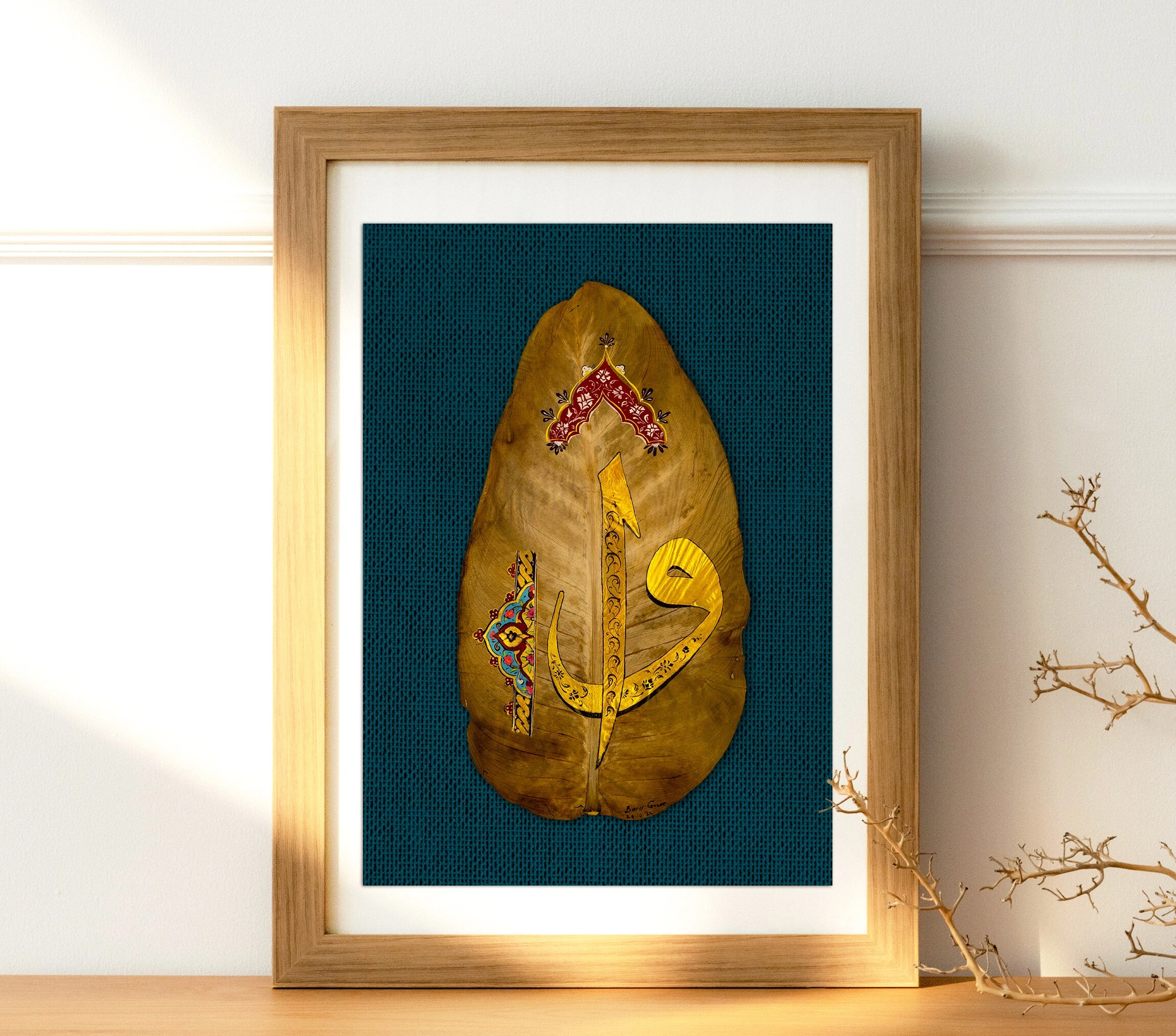 Göz alıcı tasarımıyla kauçuk yaprağı üzerine el yazması Elif Vav tezhip sanatı, her eve ilahi ve benzersiz hisler eklemek için mükemmel seçimdir. Tezhip süslemeleriyle ve çarpıcı renklerle öne çıkan Elif Vav yaprak sanatı ile tanışın. Bu sofistike İslami duvar dekoru, evinizin her odasında kendini konuşturacak. El yapımı bu İslami ev dekoru, onu gören herkesin dikkatini çekecek desenlere sahiptir. Eşsiz motifler ve botanik yönü ile her dekor stiline modern bir dokunuş katıyor. İslami duvar sanatı, kırmızı tonlar ve altın varak kullanılarak akriliklerle elde boyanmış ikonik bir tasarıma sahiptir. Arapça hat yazılı yaprak sanatı, ambiyansınızda kesinlikle bir konuşma başlatıcı olacak benzersiz ve özel bir parçadır. Zamansız ve modern bir duvar dekoru arayanlar için mükemmel seçim olan bu duvar sanatı sadece güzel ve zarif değil, aynı zamanda anlamlı ve ruhani bir mesajı da taşıyor.