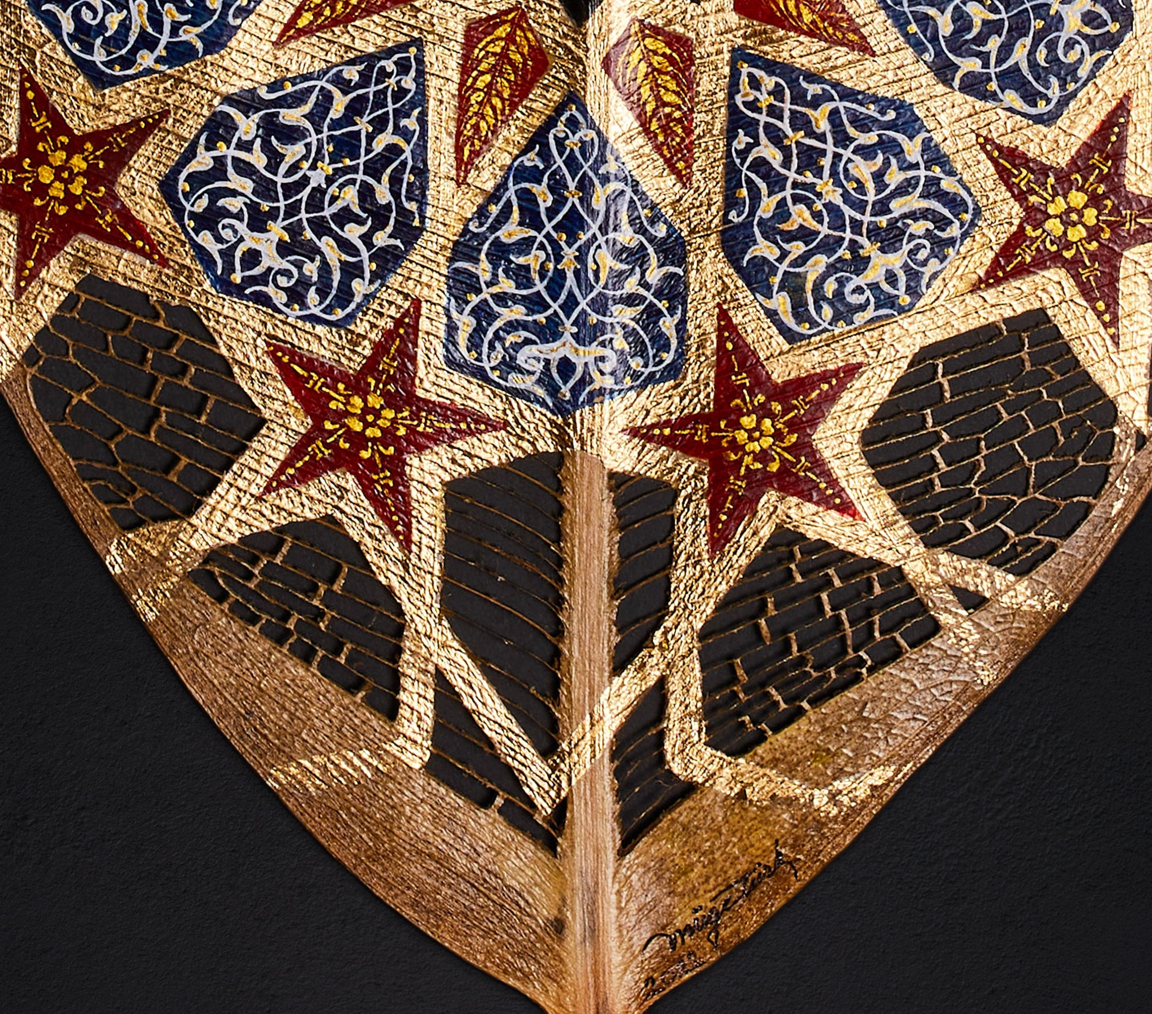 • Organik kauçuk ağacı yaprağı, akrilik boya ve altın varak