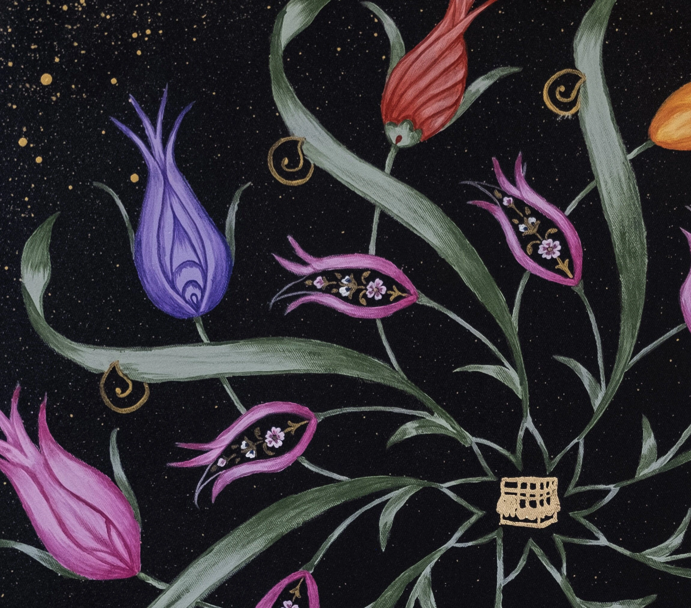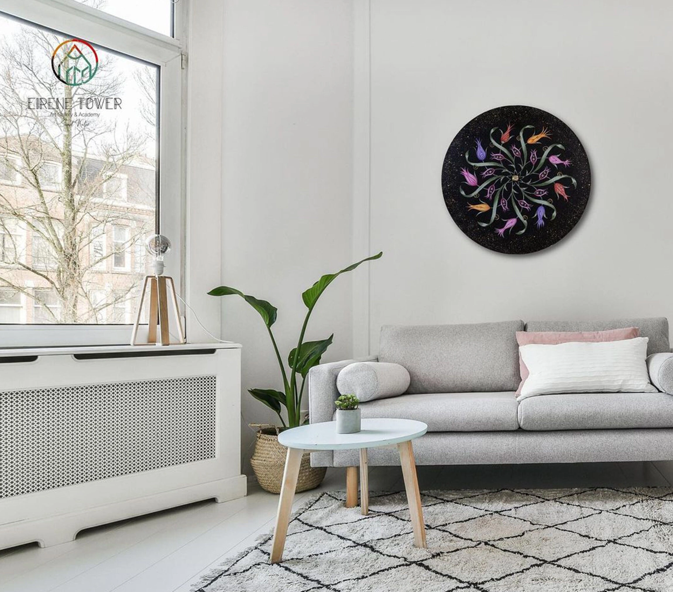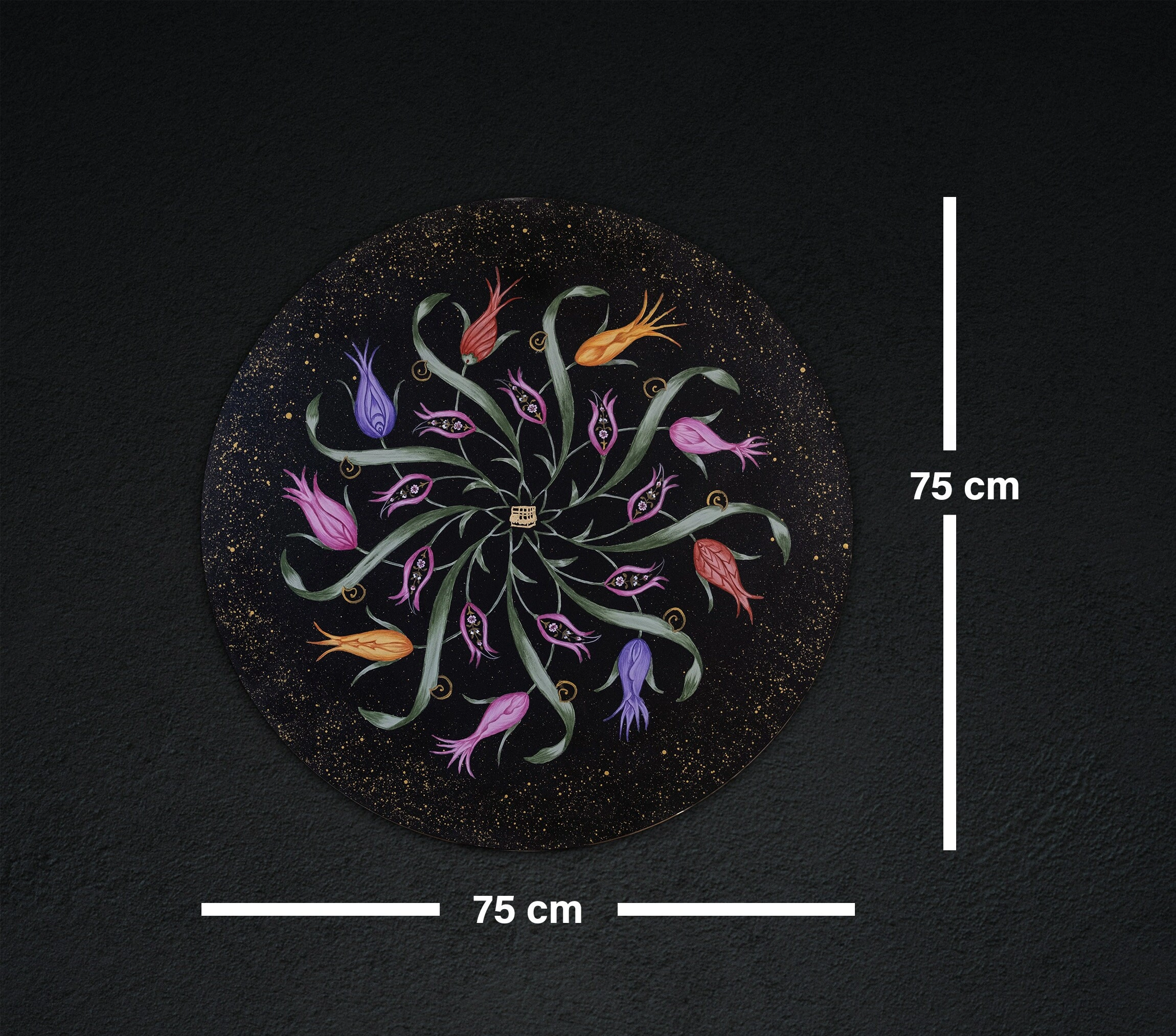 Eşsiz lale motifli siyah kanvas tablo, evinize güzellik ve dinginlik getirmenin mükemmel bir yoludur. Bu yuvarlak islami hat eseri, yaşam alanınızı manevi enerji ile dolduracak. Siyah hat kanvas tablo, her alana canlandırıcı bir ambiyans vermek için idealdir. Eserin zarif tasarımı, güzel bir sanat eseri yaratmak için geleneksel hat sanatı ve akrilikle oluşturulmuş laleleri birleştiriyor. Arapça "Allah" yazısı, narin akrilik çiçeklerle birleşerek herkesin hayran kalacağından emin olabileceğiniz sanatsal bir estetik sunar. Bu duvar sanatında kullanılan renkler, her odaya canlılık ve hayat getirecek. Bu siyah İslami tablo çekici renkler, huzur ve sükunet atmosferi getirirken adeta bir bahçenin özünü yakalar. Sevdikleriniz için mükemmel bir hediye olacak bu eser, herhangi bir odanın dekorunu güzelleştirmek için idealdir. İster özel günlerde hediye olarak, ister sadece günlük yaşam ortamınıza güzellik katıyor olun, bu zarif duvar sanatı ortama benzersiz bir dokunuş getirecek. Bu sanat eserinin getirdiği maneviyat hissinin tadını çıkarın.