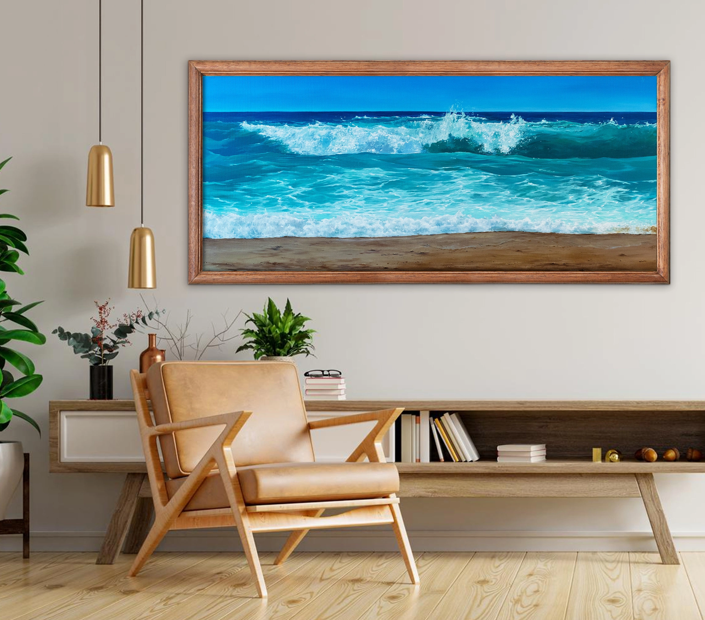 Mavi okyanus dalgalarının resmedildiği yağlı boya tablo, denizin sakinleştirici ve dingin güzelliğine eşsiz bir bakış açısı sunuyor. Mavi, beyaz ve turkuazın zengin tonları okyanus kıyısının görkemli manzarasını sunarken, güçlü dalgalar el değmemiş kumlara doğru uzanıyor. Bu zarif sanat eseri ile doğanın güzelliğini yakalayın. Resmin kendisi gerçekten büyüleyici. Sanatçı, modern ve rahatlatıcı bir sanat eseri yaratmak için mavinin canlı tonlarını ustalıkla harmanlamıştır. Sıcak tonlar ve maviler birleşerek hoş bir atmosfer sağlar. Okyanusun turkuaz derinlikleri, denizin zengin ve engin derinliğini temsil ederken, dalgaların yükselen tepeleri okyanusun hareketini ve gücünü yakalar. Deniz temalı veya modern dekorasyon fark etmeksizin her dekor stili için ideal olan bu güzel sanat eseri, her alanda huzur duygusu uyandıracak. İster yatak odanıza, ister oturma odanıza asın, tüm görenlerin hayran kalacağından emin olabilirsiniz. İnce detayları ve canlı renkleri ile mavi okyanus dalgalarının resmedildiği bu yağlı boya tablo, kesinlikle değerli bir odak noktası olacak. Bu muhteşem okyanus sanatı tablosuyla evinize benzersiz bir stil dokunuşu katın.