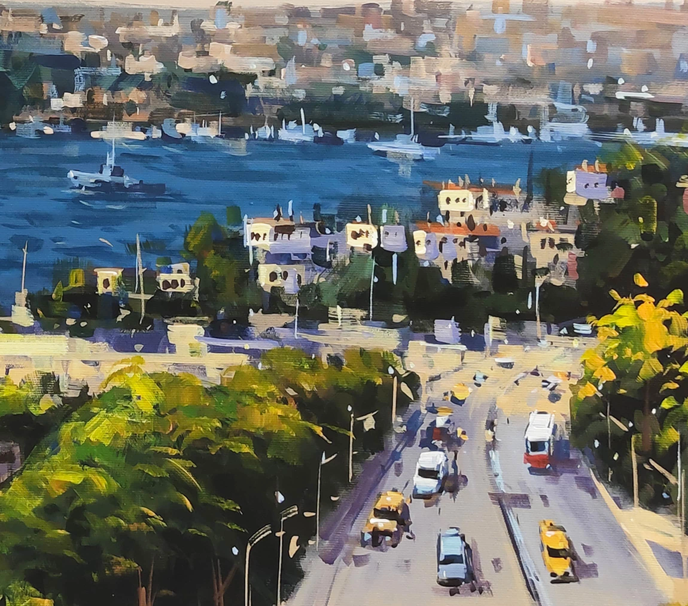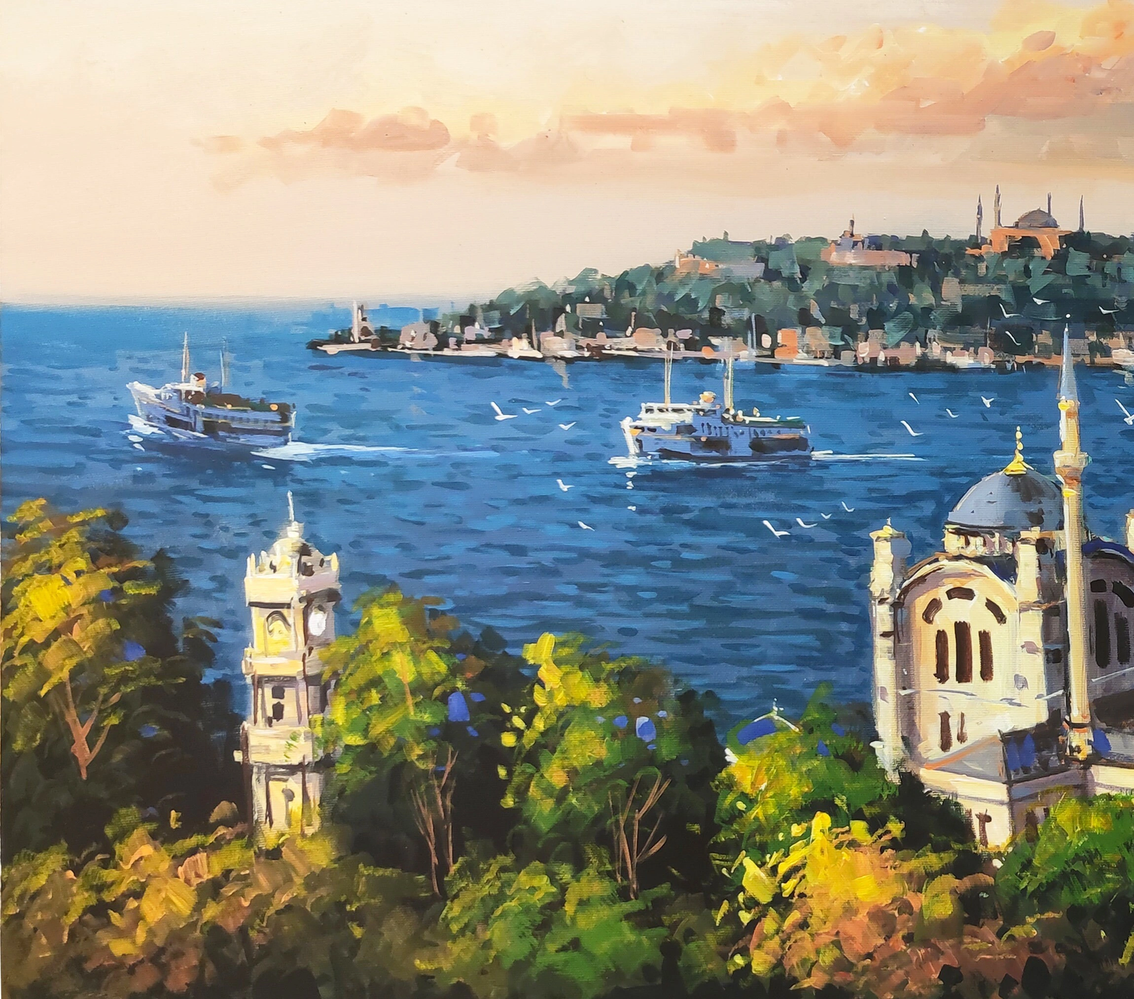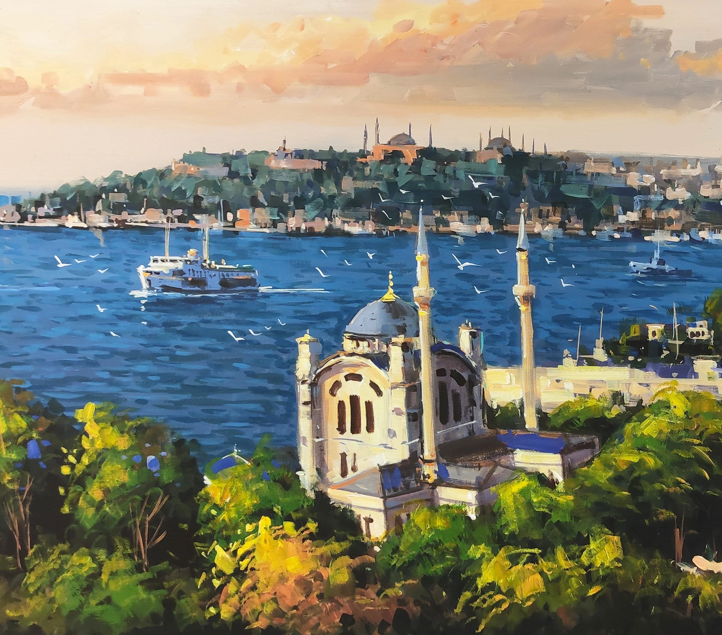 İstanbul manzaralı yağlı boya tablosu, dünyanın en güzel şehirlerinden biri olarak uzun ve zengin bir tarihe sahip İstanbul'un ikonik sembollerinin şık bir tasvirini yapıyor. Işıltılı görüntüsüyle İstanbul Boğaz manzarasının göz alıcı şekilde yorumlandığı bu kanvas tablo Ortaköy ve çevresine canlı renklerle görkemli bir bakış sunuyor. Canlı renklerle ve göz alıcı manzarasıyla her ortamda parıldayacak bu İstanbul Ortaköy Cami manzaralı kanvas tablo, koleksiyonunuza ekleyebileceğiniz sıcak bir eser olmakla beraber her dekora eşlik edecek mükemmel bir parçadır. Ofiste, oturma odasında, salonda ya da mutfakta sergileyin, gören herkesin hayran kalacağı bir parça olacak. Bu eşsiz İstanbul manzarasıyla, şehrin güzelliğini evinize getirin. Sevgiyle üretilmiş, el yapımı bu tuval sanatı, her odaya bir enerji ve zarafet kıvılcımı katacak.