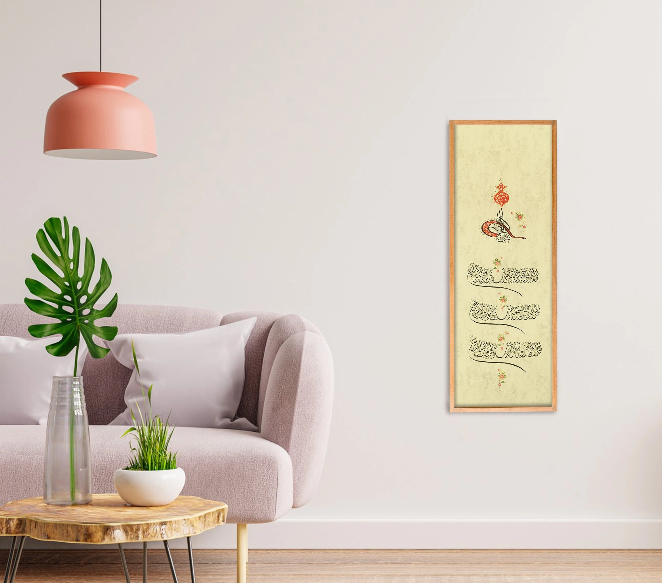 Ottoman handwritten firman is a very special piece of Islamic home decor. Handwritten in in beautifully elegant Ottoman style calligraphy, it reads as a reminder of the favor and grace of God. This Arabic calligraphy is a reminder of the divine wisdom that provides a peaceful touch to your Islamic home decor. Ottoman ferman is carefully hand crafted out of the finest materials where handwritten Islamic calligraphy is decorated with delicate engravings, including intricate floral motifs. It can either be framed and hung on the wall. This unique handwritten ayat is a thoughtful Muslim gift for any special friend or family member who wants to add an elegant touch to their Islamic home decor. Beautiful way to remember the blessing of Allah bestowed upon us all. It makes for a great interior design statement and is sure to make your Islamic home look just a little bit more elegant and timelessly beautiful. ��‍� By Elif Ifta Yildiz ✒️ Since calligraphy is art of writing these Islamic wall arts are handwritten on papers not painted on canvas. � Various colored Inks over paper � 35 x 100 centimeters Artwork is shipped, rolled in a sturdy cardboard tube. Check photos for packaging details Wall decor art is genuinely handmade. Colors may be slightly different than actual photos due to lightning conditions and monitoring devices. If you are unsure about colors or want to see artwork in real enviroment please contact us. � FREE SHIPPING on all orders. � Once your purchase has been shipped we will provide you with the tracking number. � We usually process your orders on the same day as we take your order. If this is not the case we will inform you. In specific periods, due to high traffic with carriers, delivery may take longer than expected. � The buyer is responsible for any custom and import taxes that may apply. Delays caused at customs are beyond our responsibility thank you for your understanding. � Colors may be slightly different than actual photos due to lightning conditions and monitoring devices. If you have any questions related to the artwork feel free to message and we will usually reply within a few hours. � https://www.etsy.com/messages/new?with_id=591379999&referring_id=33740663&referring_type=shop&recipient_id=591379999