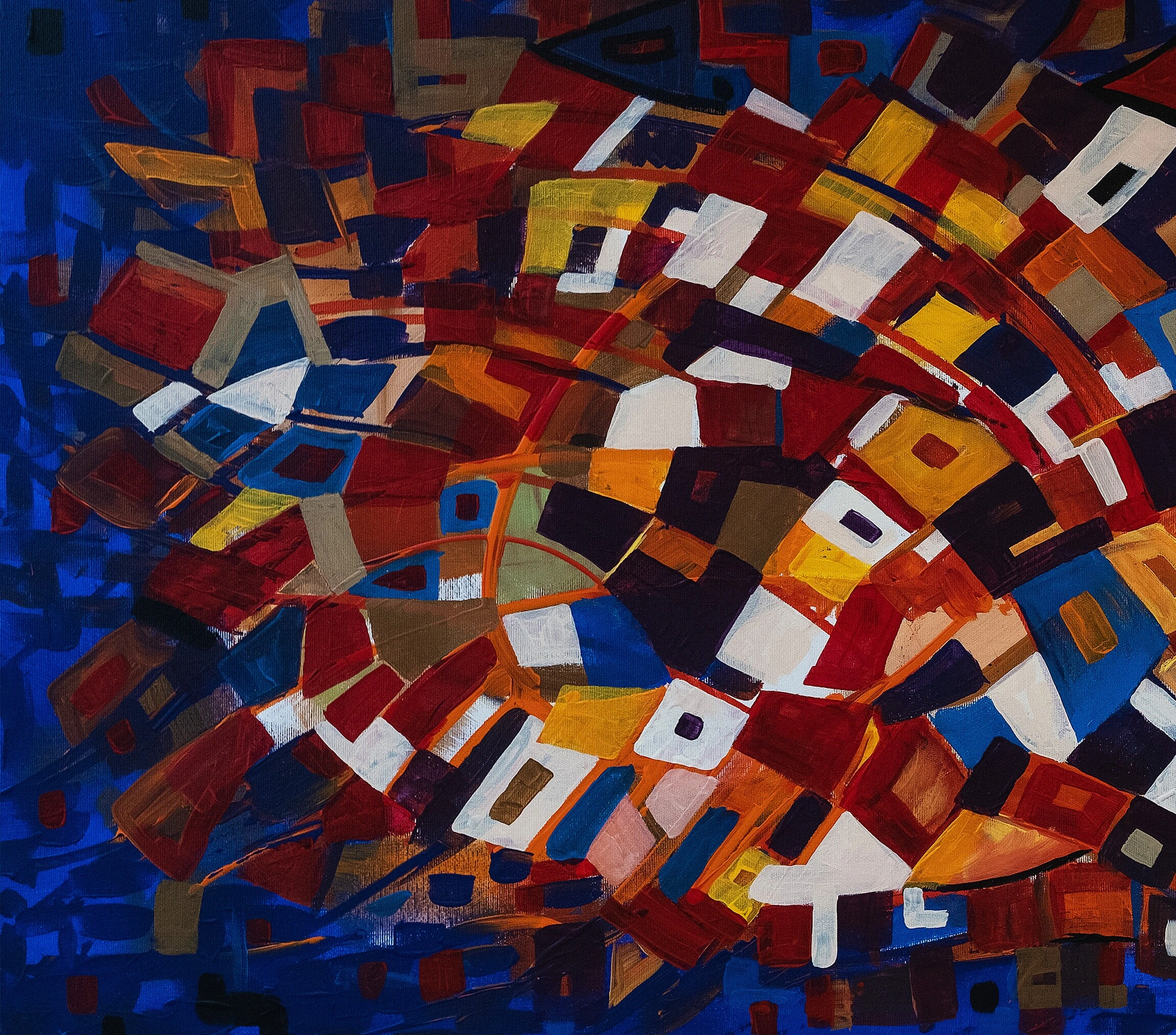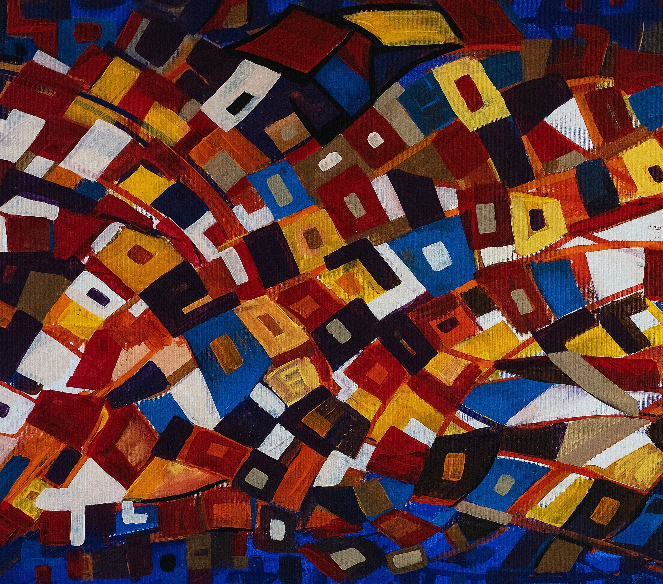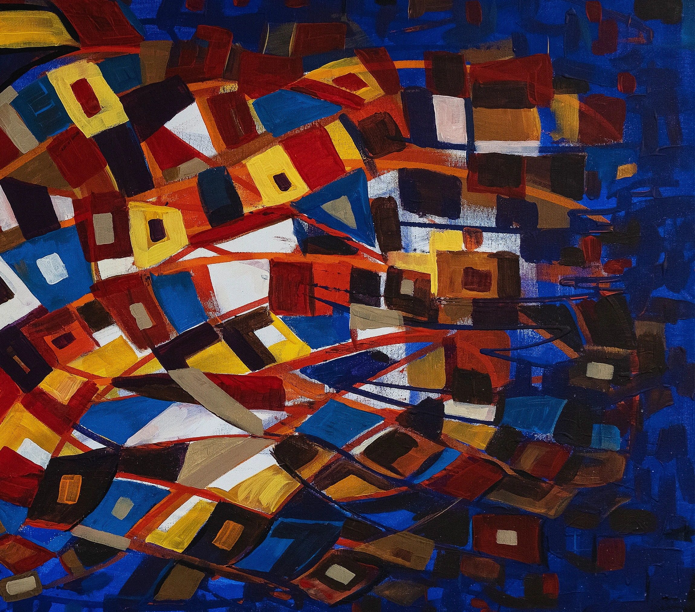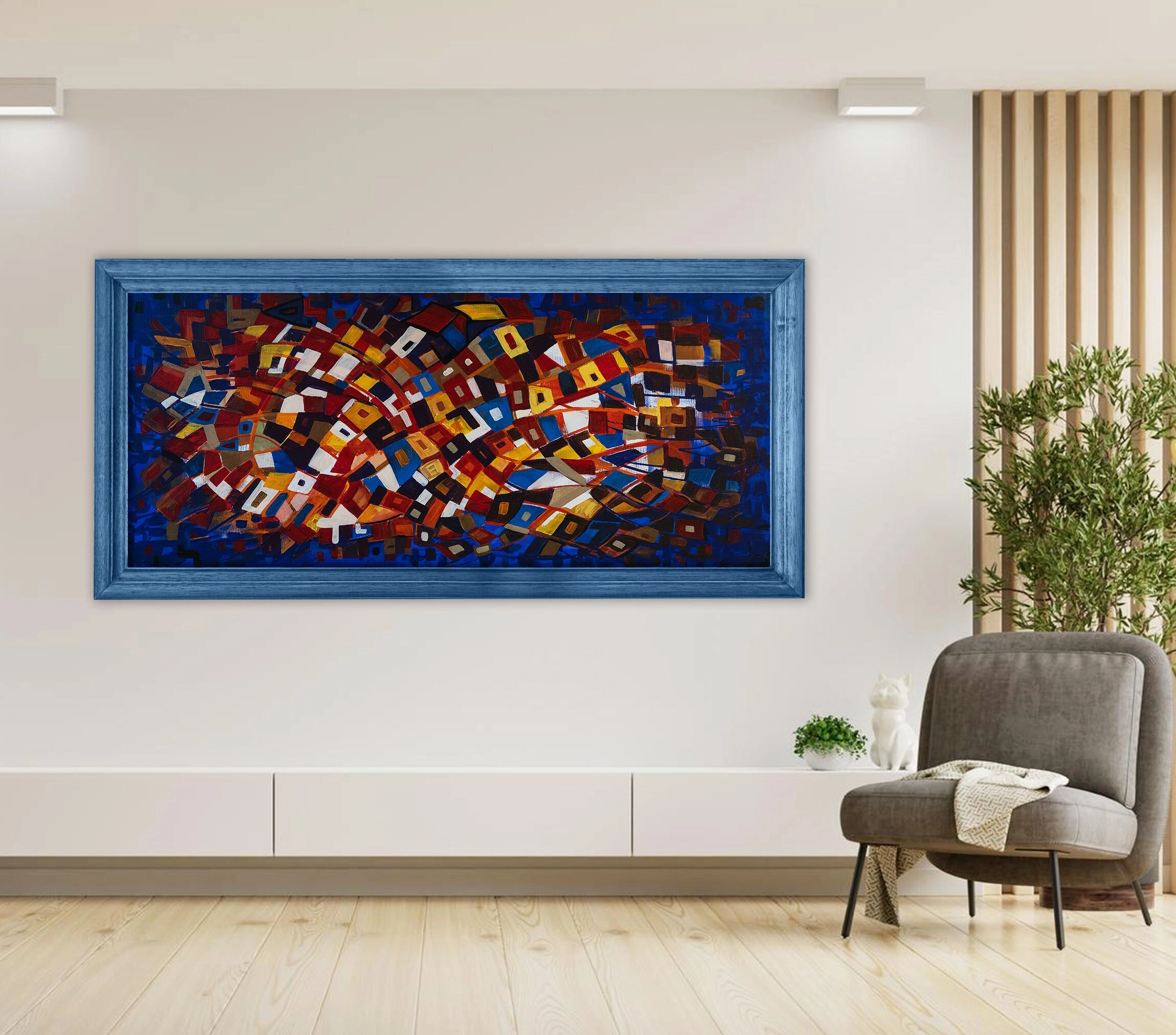 • Geometrik Desenli Modern Kanvas Tablo Tuval Üzeri Yağlı Boya Abstrakt Şekiller Modern Duvar Dekoru