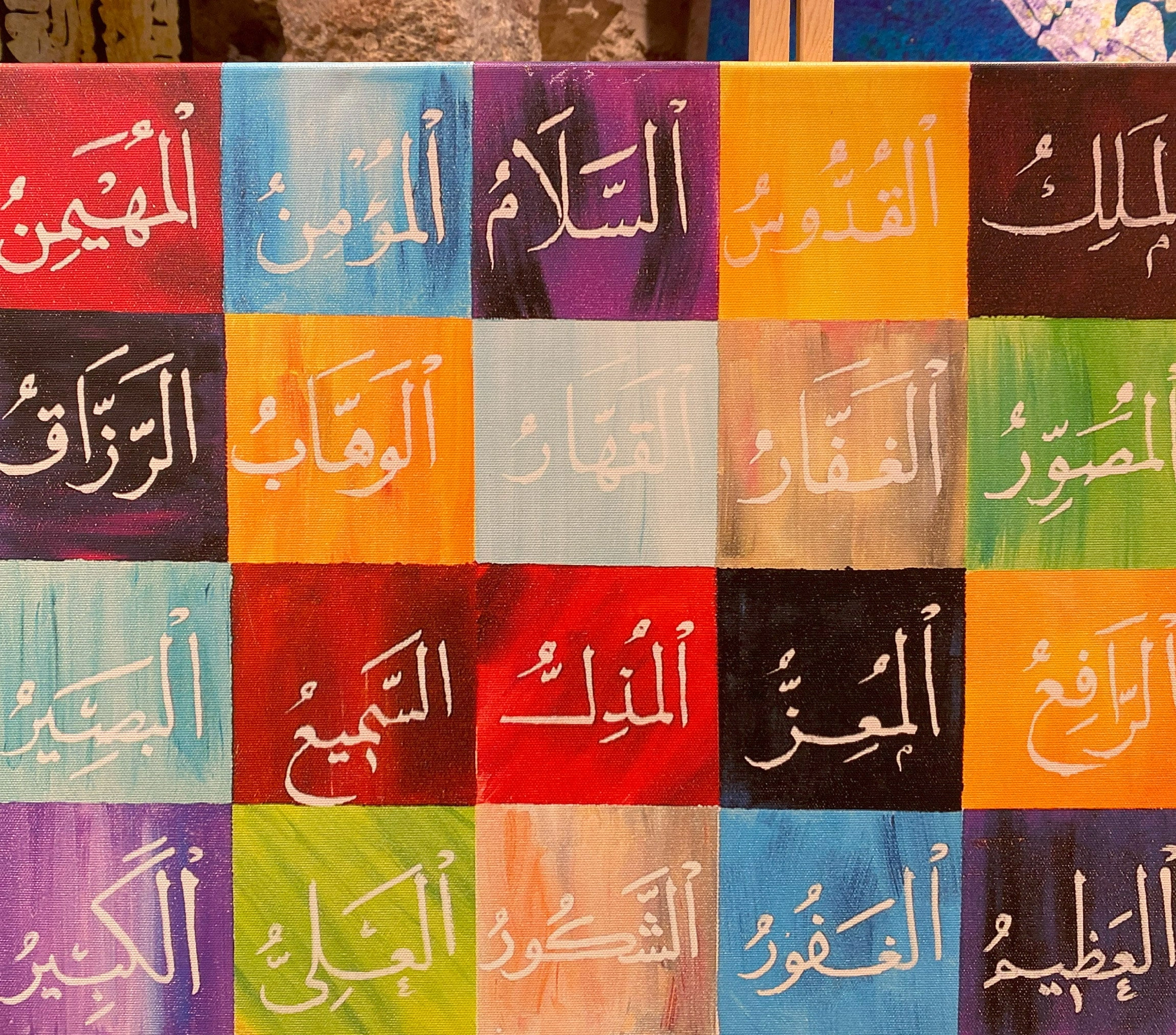 Tuval üzerine dijital uv baskı tekniğiyle yapılan Esma Ül Hüsna renkli kanvas baskı, İslam inancının ve kültürünün özünü yakalayan çarpıcı bir parçadır. Allah'ın 99 isminin yazılı olduğu fine art kanvas baskı, ilahi olanın görkemini güzel bir biçimde kutladığı için evinize veya ibadet yerinize mükemmel bir katkı yapacak. Her parça, arşiv kalitesinde kanvas üzerine yüksek çözünürlükte ve aslına uygun olarak basılmıştır ve bu baskının canlı renklerinin ve küçük detaylarının ortaya çıkmasını sağlar. Uv fine art baskı işlemi, bu İslami kanvas baskısının tüm karmaşık ayrıntılarını ortaya çıkarır ve tasarımda çok zarif bir şekilde iç içe geçen hassas kaligrafiyi sergiler. Bu sanat eseri, inanç ve sanatın uyumunu özetlemektedir. Allah'ın bu 99 isminin her birinin, bizim de yaşayabileceğimiz en büyük niteliklerini temsil etmek için seçildiği söylenir. Bu güzel parçayı evinizin herhangi bir yerine yerleştirdiğinizde, Allah'ın hikmetini ve korumasını size hatırlatan bir eser olacak. Esma Ül Hüsna fine art baskı tabloyu ister duvarınıza asın, isterseniz güzel bir hediye olarak verin, çekiciliği yadsınamaz. İslami kanvas baskımız, Allah'ı ve O'nun birçok adını onurlandırarak evinize renk ve maneviyat katmanın inanılmaz bir yoludur. Bu türünün tek örneği sanat eserini ambiyansınıza ekleyerek evinize hak ettiği ilahi güzelliği verin. Bu el yapımı İslami kanvas baskı, Alman üretimi baskı makineleriyle yapılmış olup ayrıntılara olağanüstü özen gösterilerek üretilmiştir.