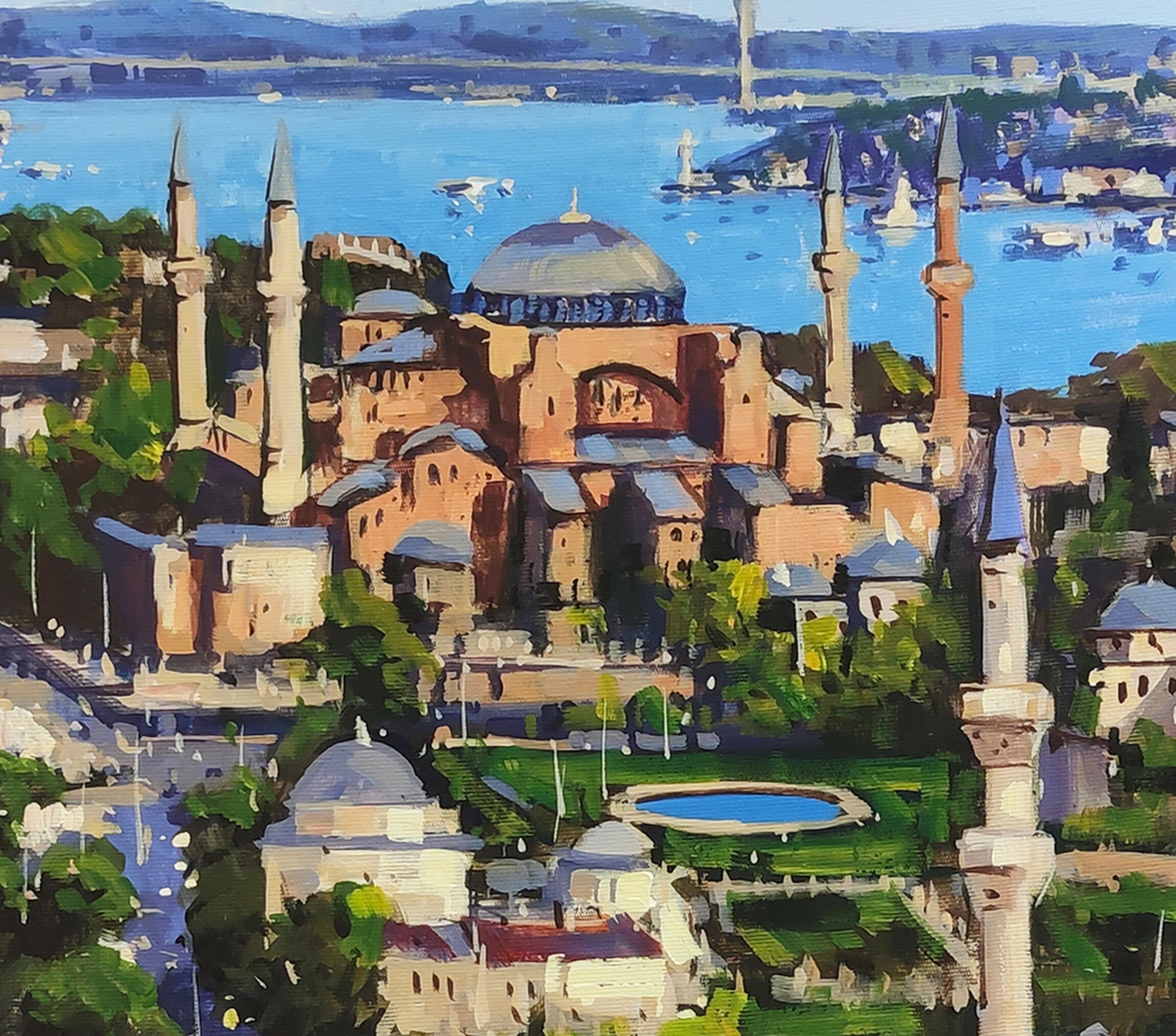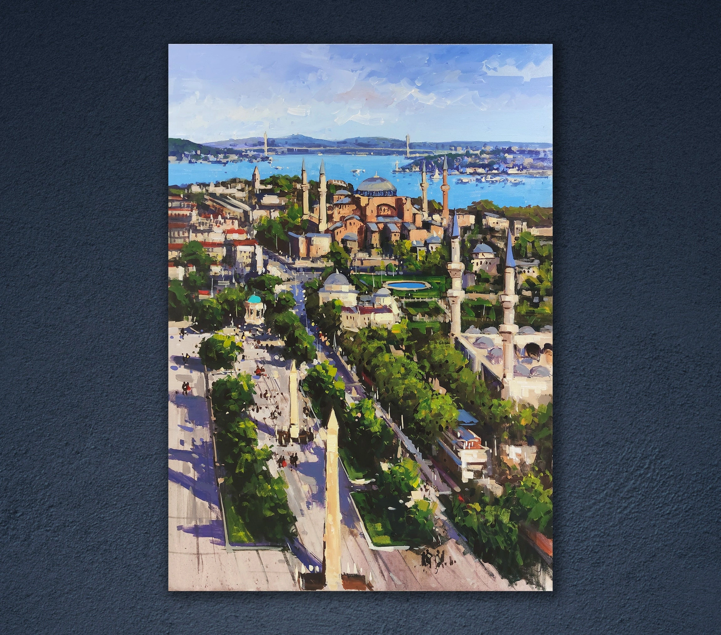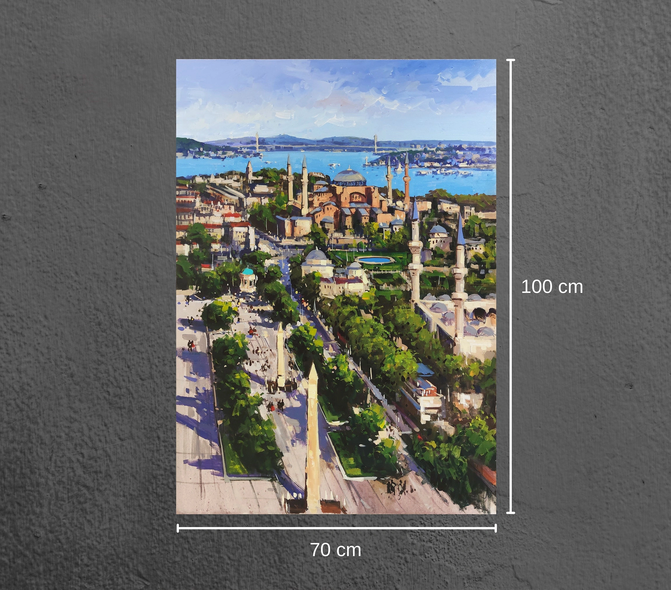 • Sultanahmet Meydanı ve Aya Sofya Kanvas Tablo Tuval Üzerine Yağlıboya İstanbul Manzarası Sultanahmet Dikilitaş İstanbul Resmi Hediyelik Yağlı boya Ev Dekoru
