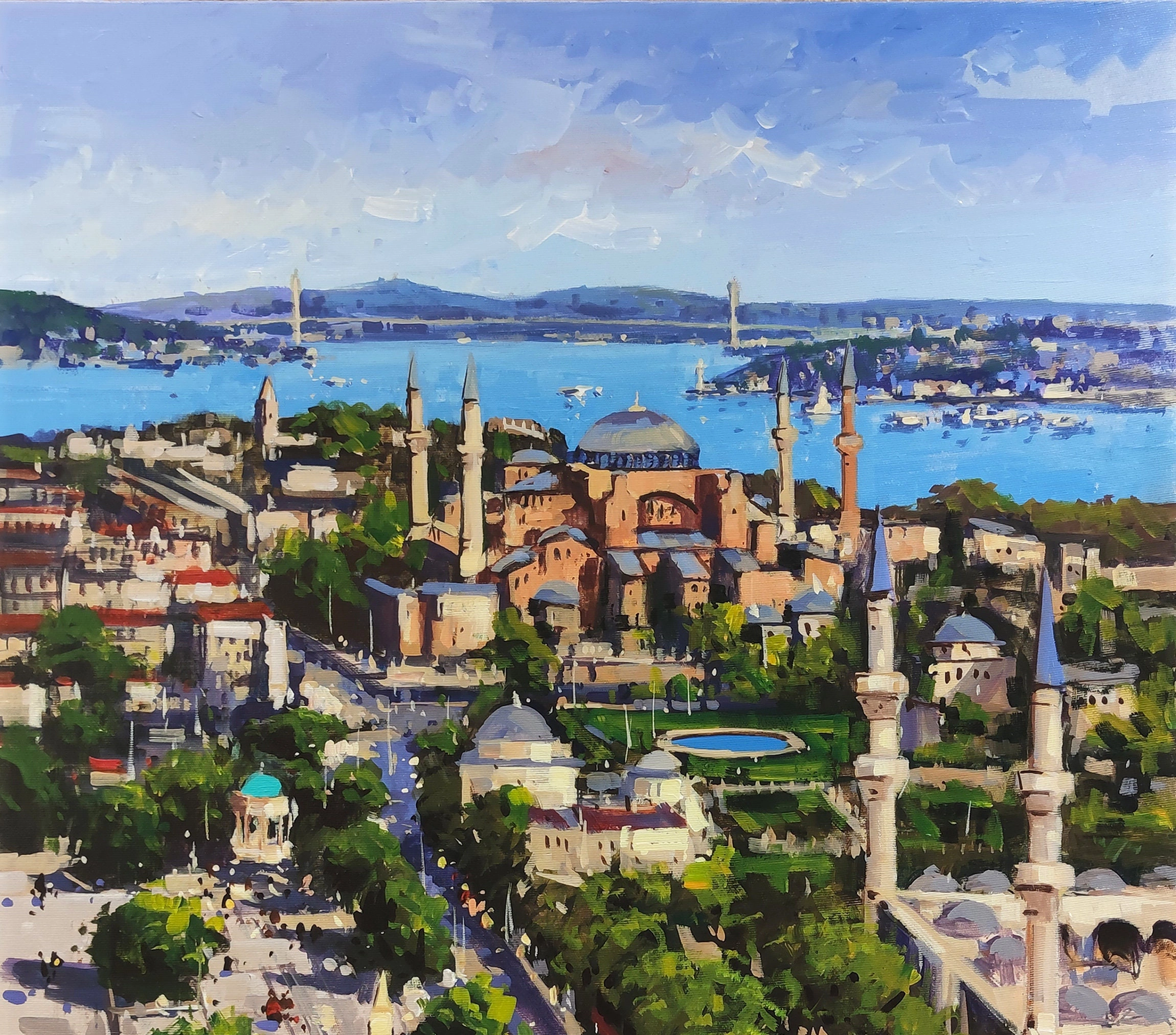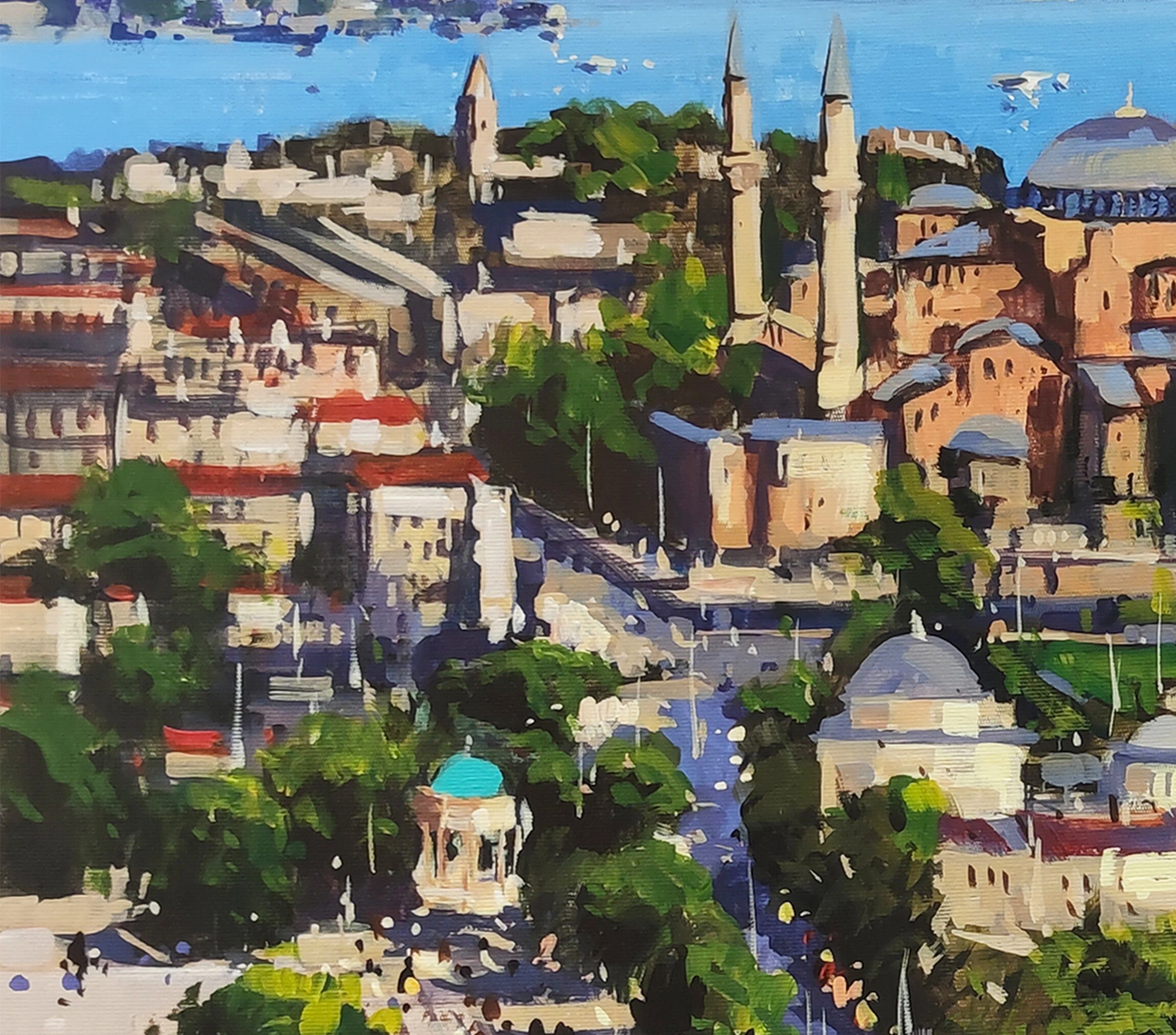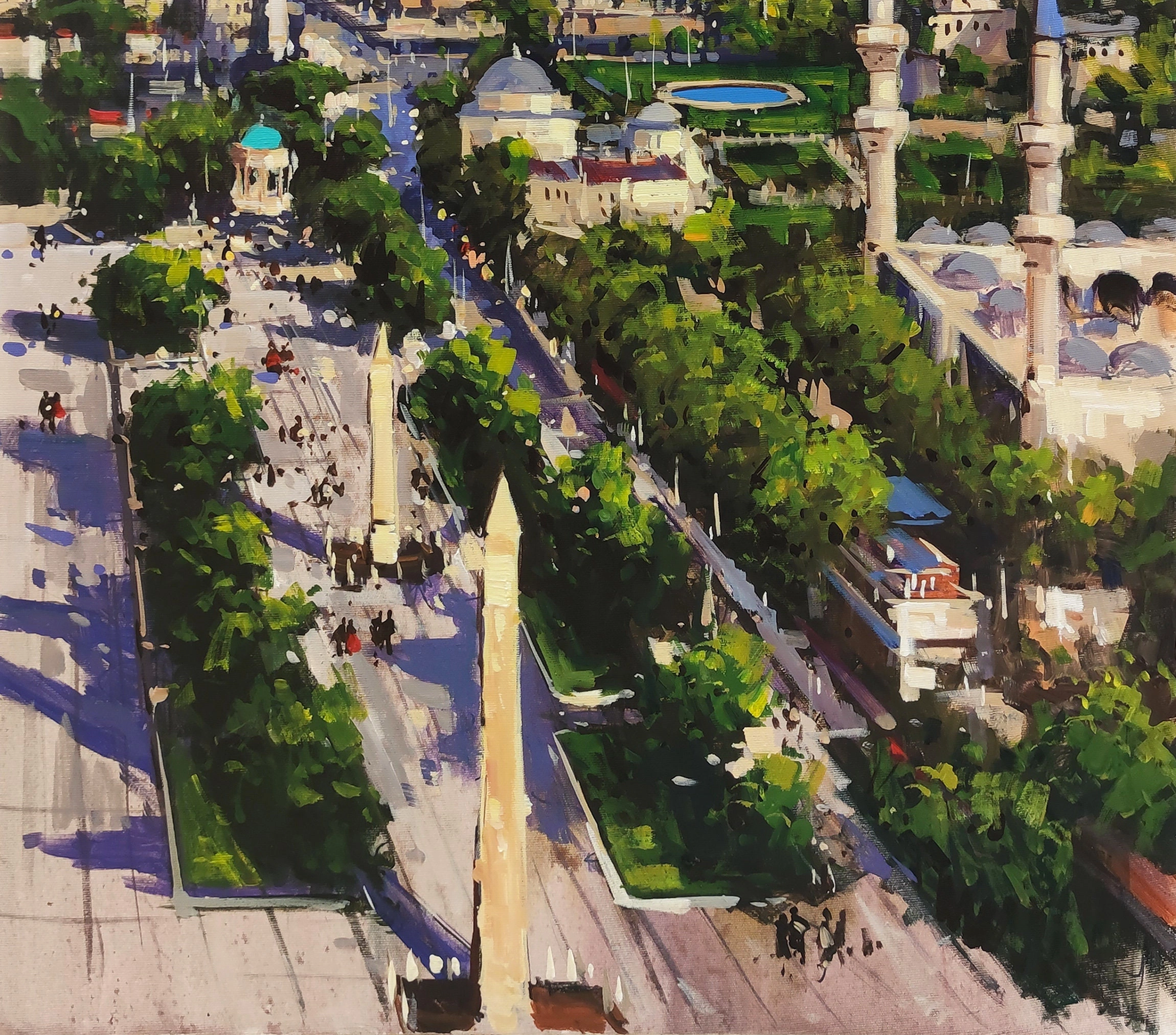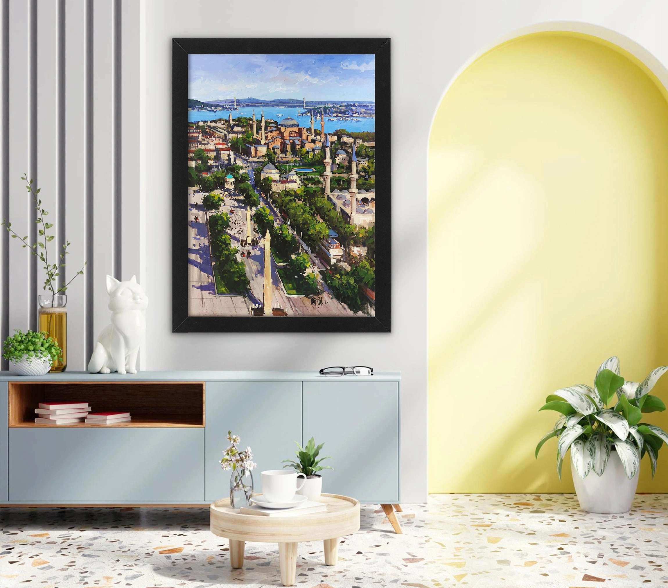 • Sultanahmet Meydanı ve Aya Sofya Kanvas Tablo Tuval Üzerine Yağlıboya İstanbul Manzarası Sultanahmet Dikilitaş İstanbul Resmi Hediyelik Yağlı boya Ev Dekoru