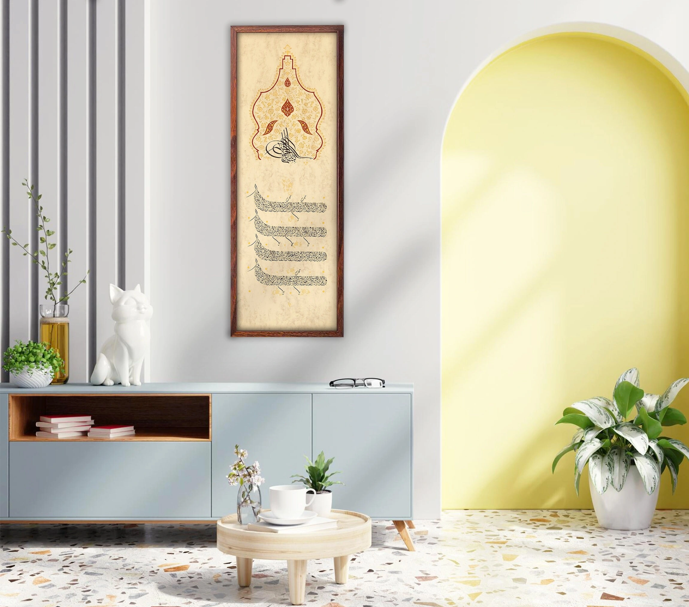 Beautiful and meaningful Surah Al Imran Islamic wall decor is a truly remarkable Islamic calligraphy manuscript that will bring an incomparable touch of spirituality and charm into your home.