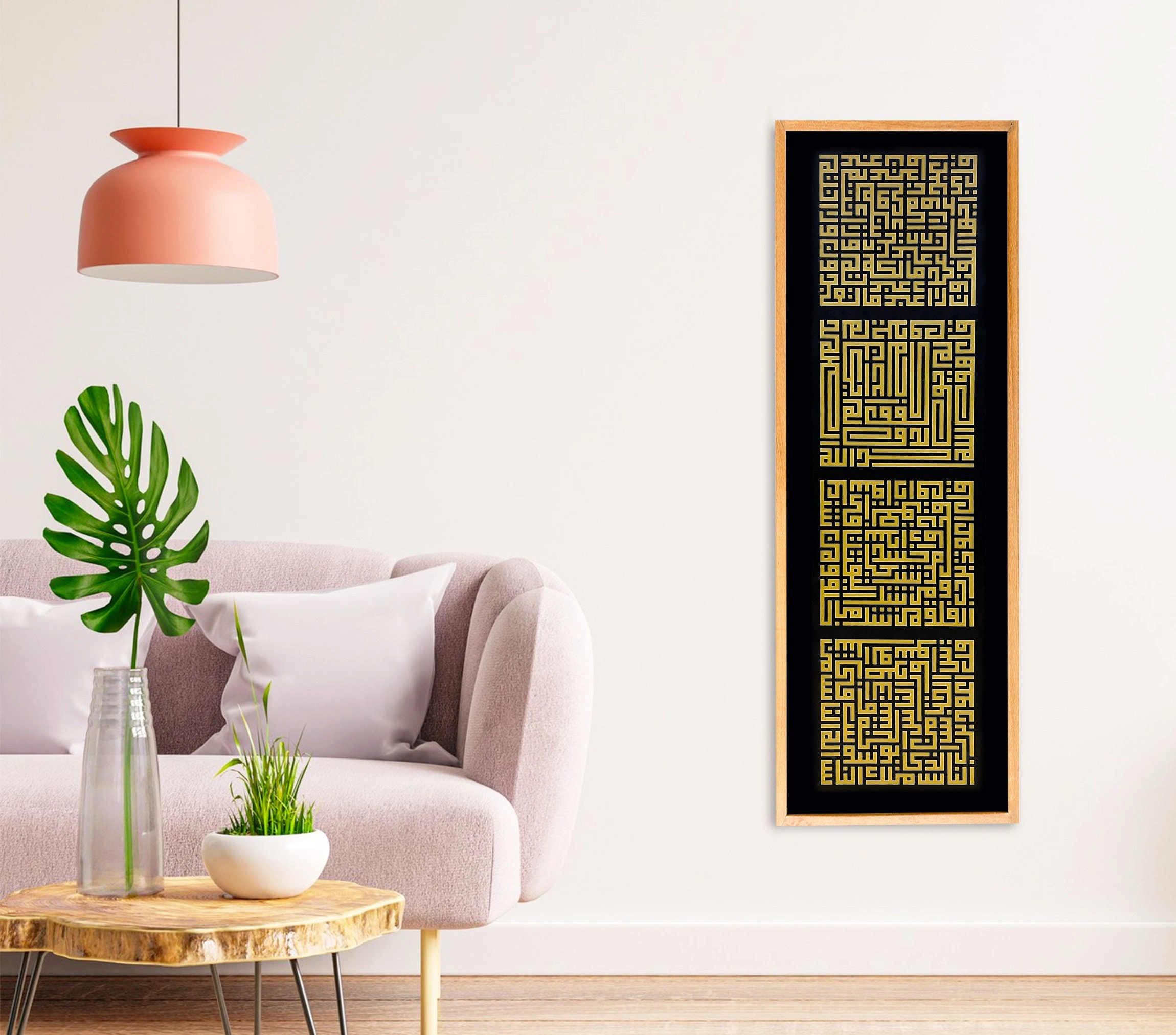 This modern Islamic decor artwork will bring the spirit of Islamic culture into your home. The Surah Ikhlas is one of the most important chapters in the Quran, helping you to build and maintain a strong spiritual connection to the faith. Its presence in your home will be a reminder of the Muslim beliefs and values, creating a peaceful atmosphere that fills your home with love and understanding.