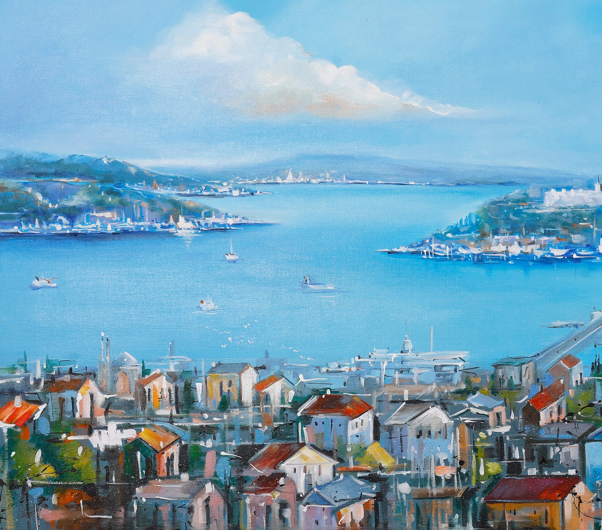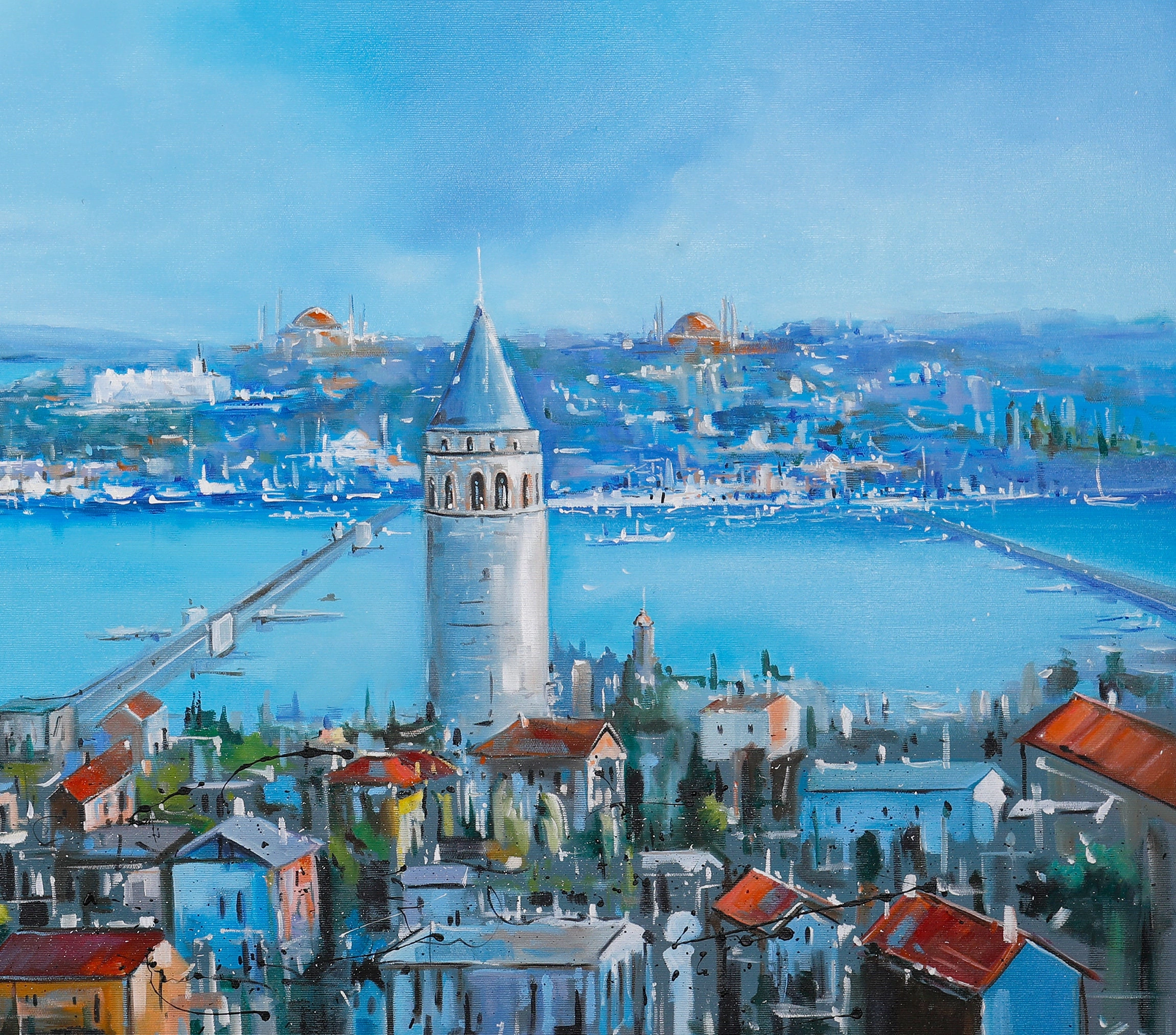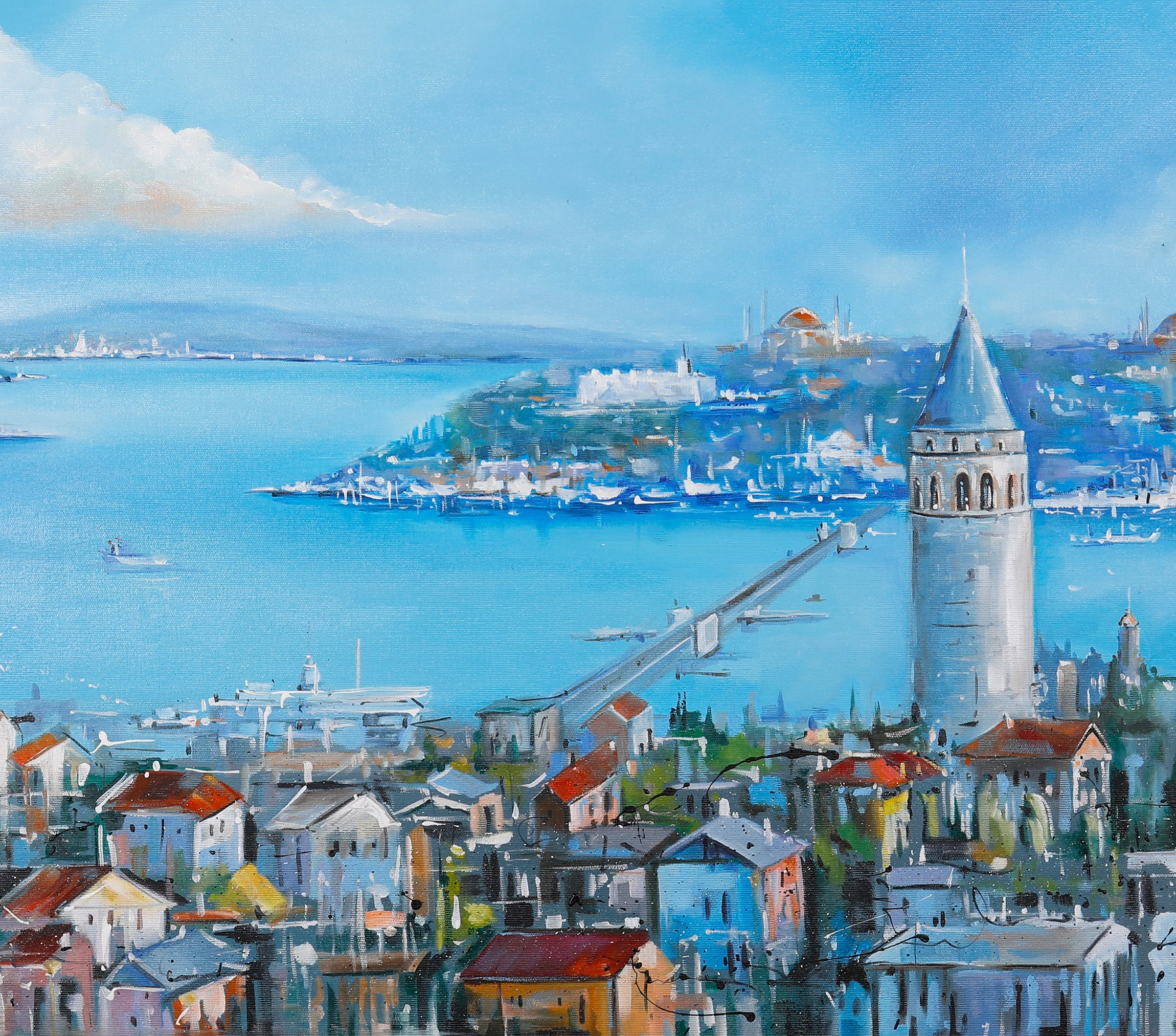 İstanbul'un görkemli Tarihi Yarımada manzarasını duvarlarınıza getiren duvar dekoru, ev ve ofis dekorasyonunuza değer katacak. Panoramik İstanbul manzaralı resim, tanıdık yapıları ve enerjisiyle İstanbul şehrinin güzelliğini çarpıcı manzarada buluşturuyor. Yumuşak renkler ve mavi ağırlıklı tonlar yatıştırıcı bir etki verirken, sizlere de hareketli İstanbul şehrinin anlatılmamış hikayelerini anlatır. Işık ve gölge kullanımı eseri dengeleyerek, bakışları İstanbul silüetinin ikonik mimarisine çekiyor. Her istediğinizde, İstanbul'un güzelliğine ve ihtişamına kendi ambiyansınız rahatlığında tanık olacaksınız. Bu benzersiz parça, modernden klasiğe dekor temanız ne olursa olsun her dekorasyon stilini tamamlayacak. Bu harika şehir manzarasını, İstanbul sokaklarının bir hatırası ve şehre bir saygı duruşu olarak salondan oturma odasına, mutfağa, ofise veya koridora kadar evinizin herhangi bir odasında sergileyebilirsiniz. El yapımı bu orjinal sanat eseri ile İstanbul şehrini evinize getirin. Bu etkileyici tuval sanatı, şehirde olmasanız bile İstanbul'un dikkat çekici şehir manzarasının tadını çıkarmanıza izin verecek.