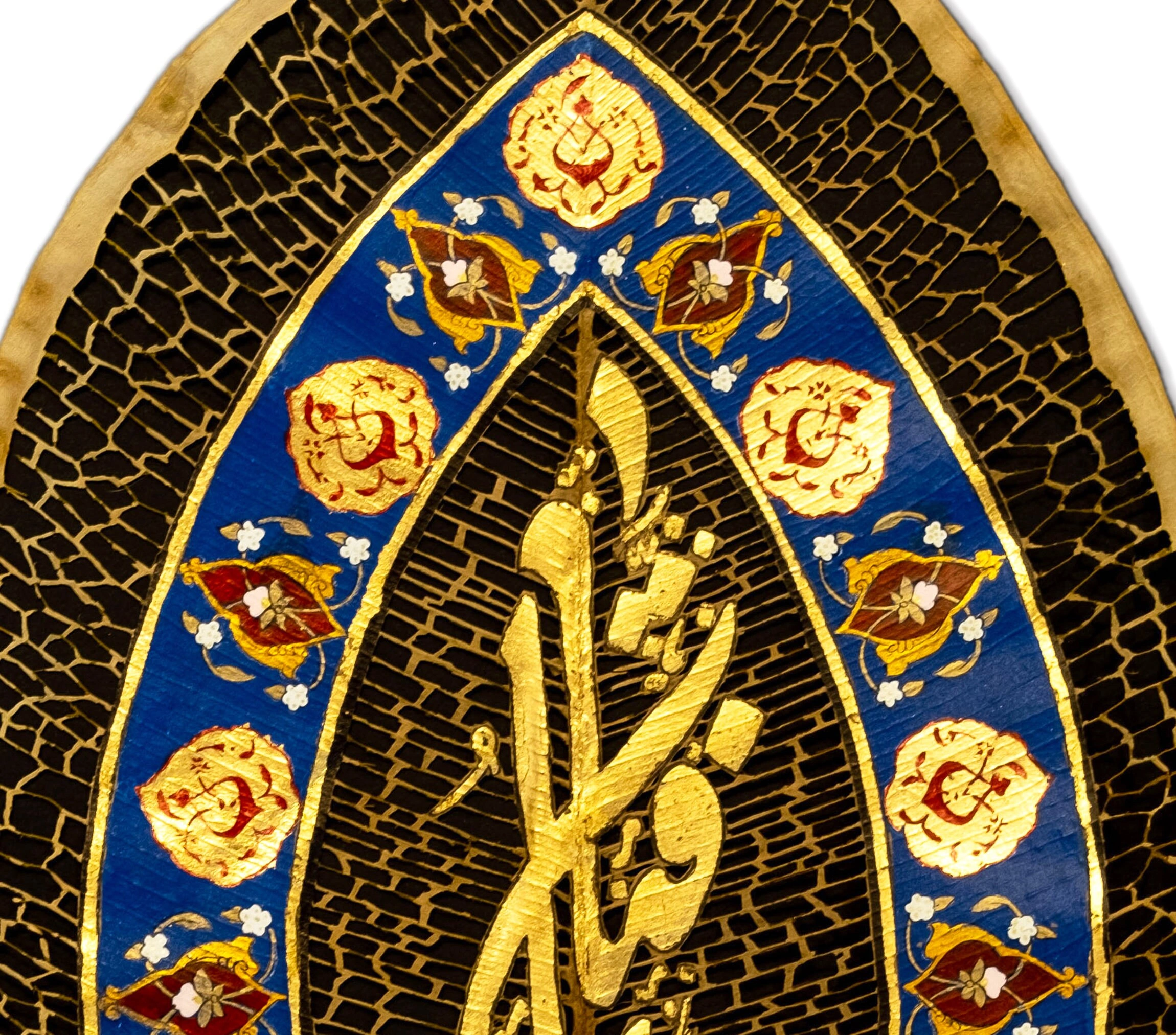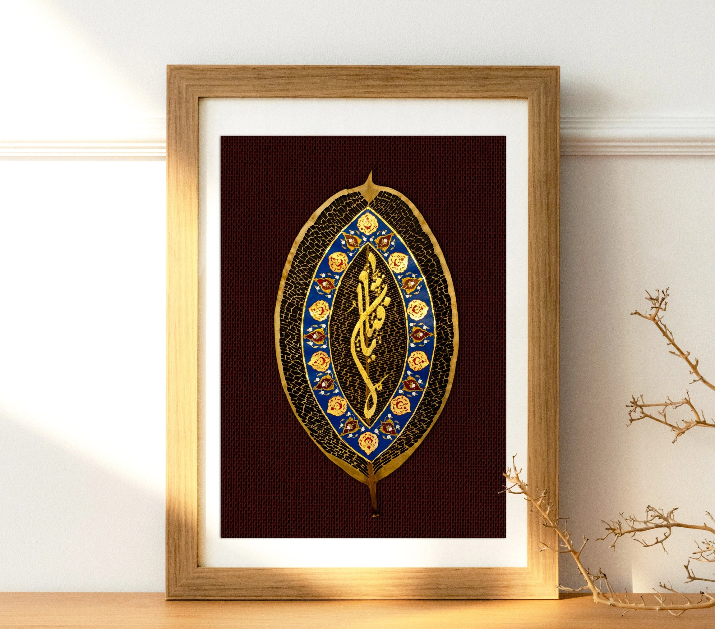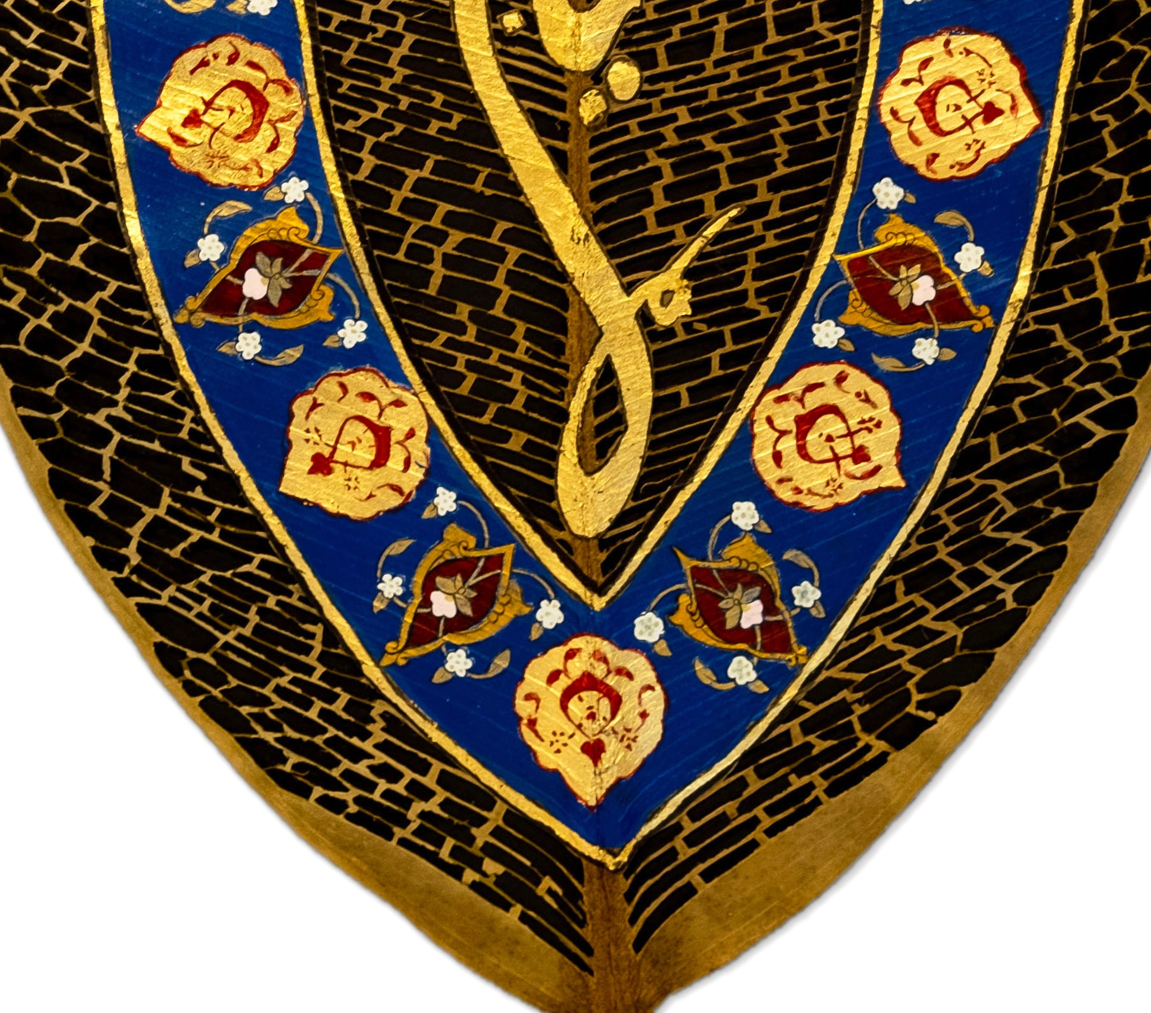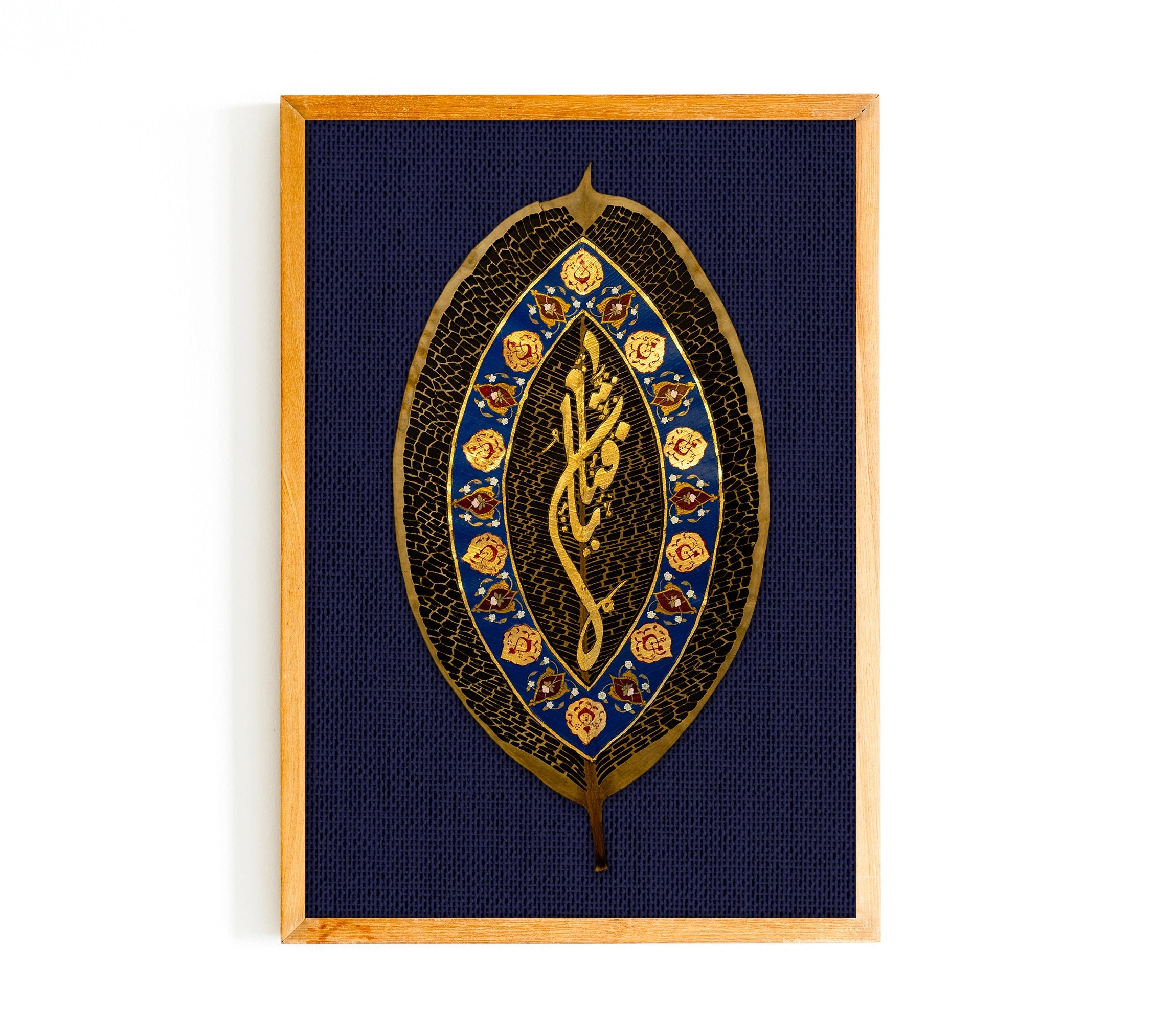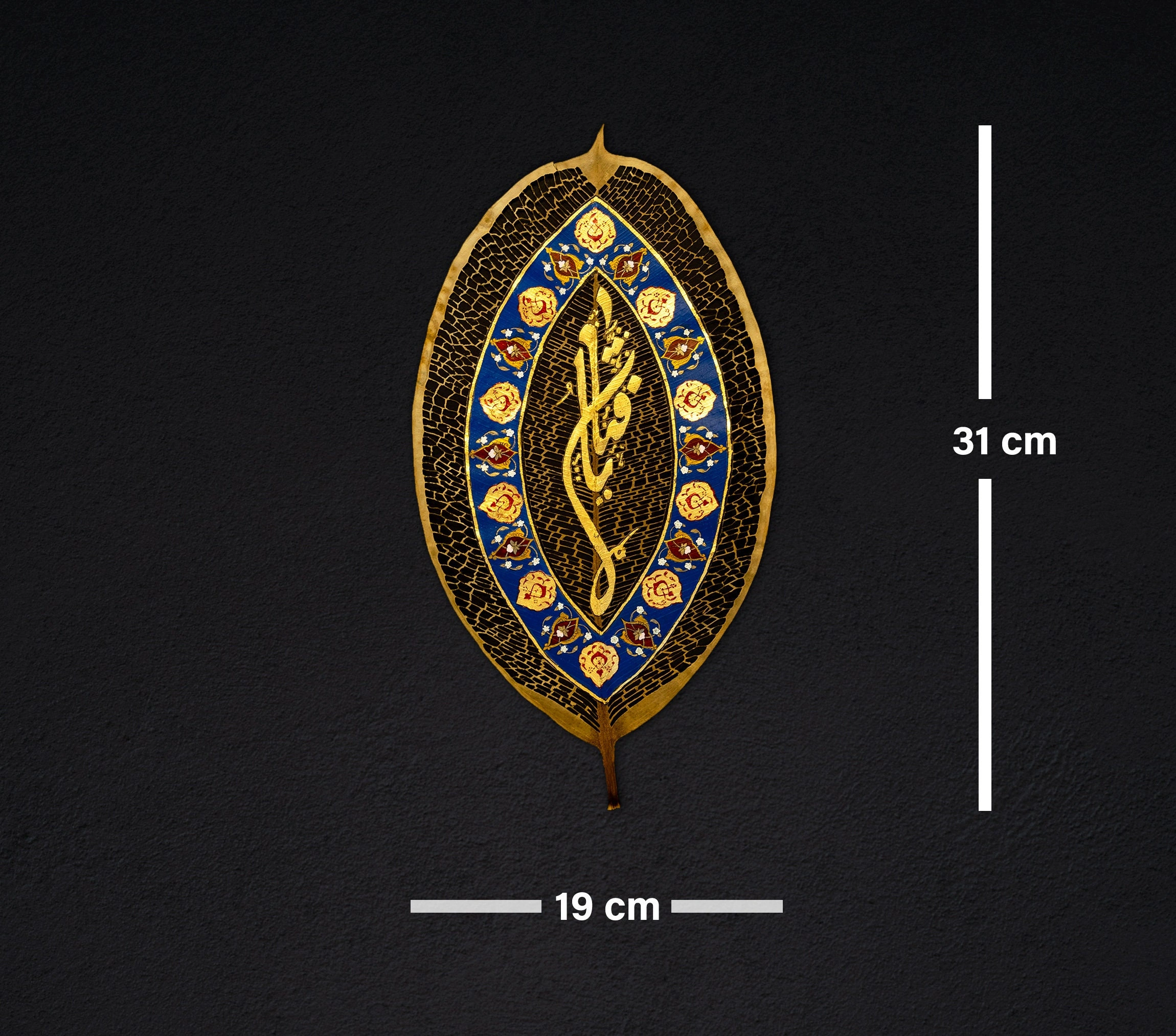 • Kauçuk Ağacı Yaprağı Üzerine Ya Fettah Tezhip Sanatı Gerçek Yaprak Üzerine Tezhip Süslemeli El Yazması Ya Fettah Suresi Hediyelik Ev Dekoru Ficus Elastica