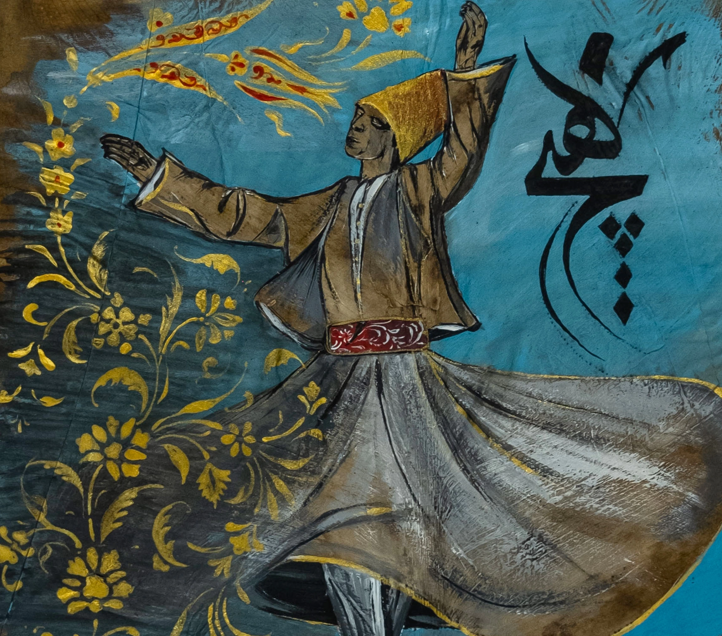 The idea behind this Rumi semazen Mevlana art is to remind us that at the heart of every life form, there is a divine spirit. Reminding us that we are all connected and that we are all part of something much bigger than ourselves.
