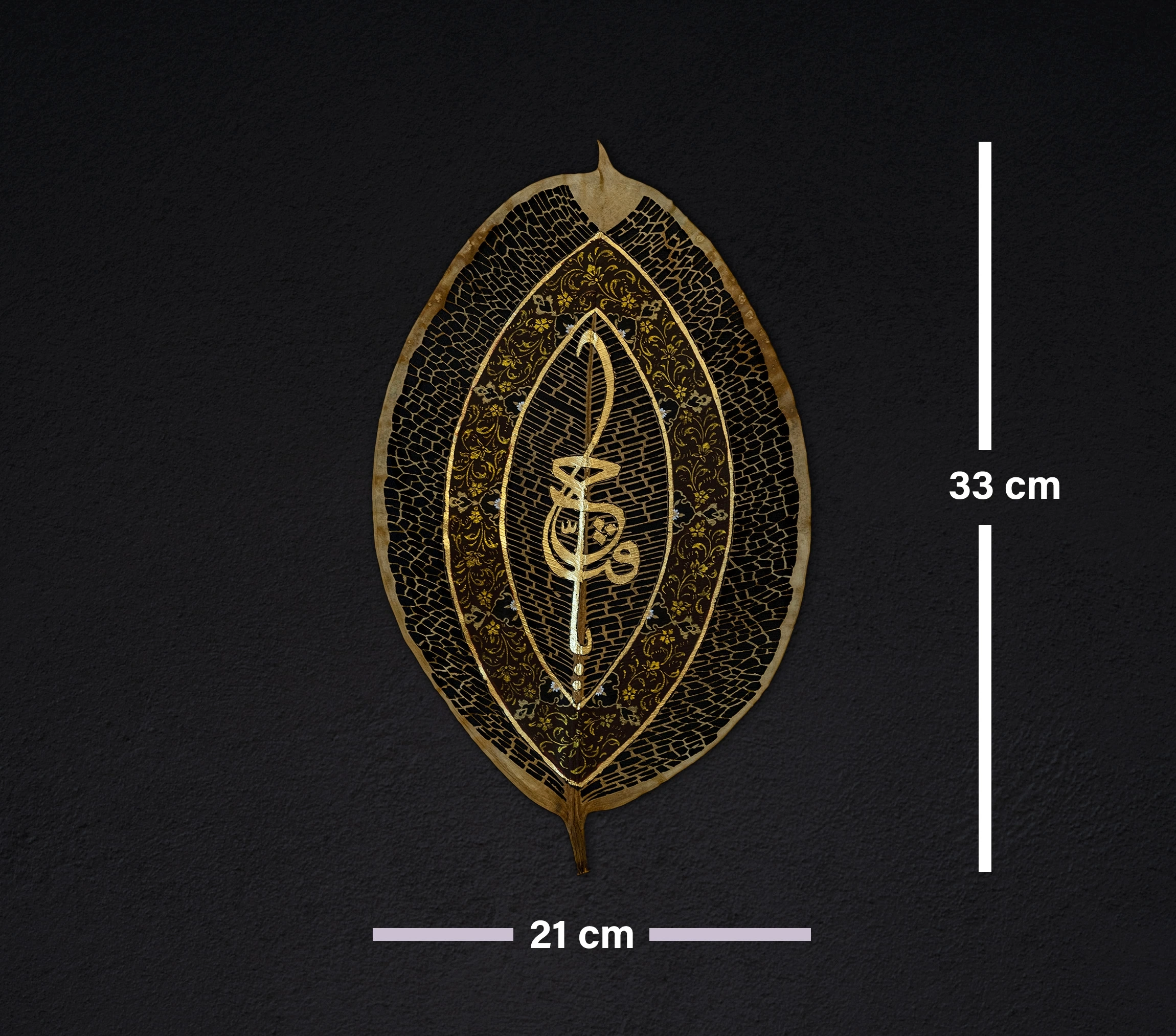 Each leaf is unique and offers a depiction of Quranic verses. Every detail with extraordinary craftsmanship, handcrafted on organic leaf, ensures that this precious leaf art remains timeless.