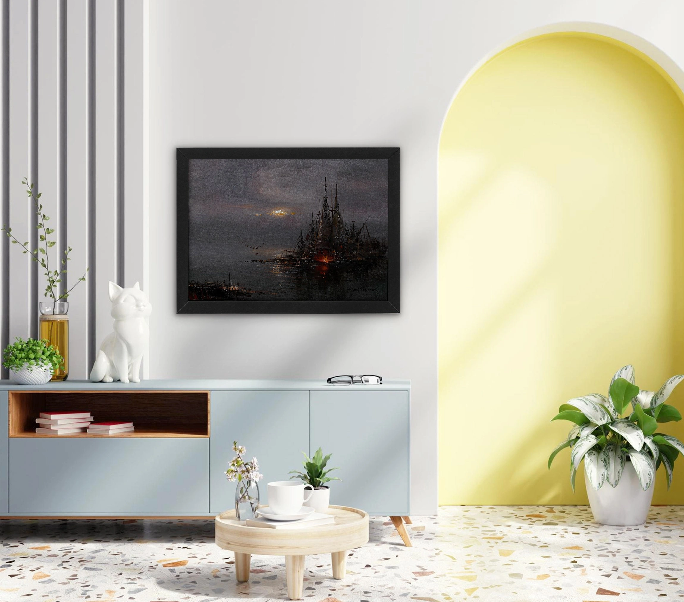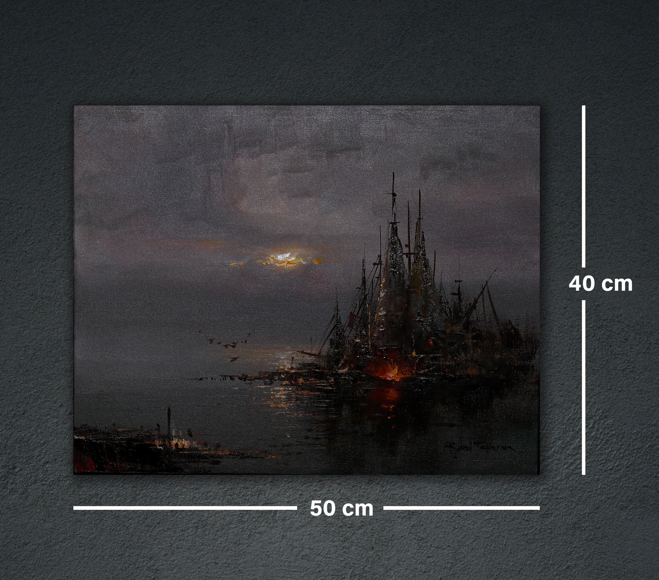 Günbatımında denizdeki teknelerin resmedildiği yağlıboya kanvas tablo, evinizi adeta bir vahaya dönüştürecek. Bu çarpıcı İstanbul tablosu, antik İstanbul kentinin güzelliğini ve duvarlarınıza taşıyor. İstanbul deniz temalı bu tablo, hareketli şehrin güzel bir kıyı manzarasına sahiptir. Etkileyici mavi tonlar, İstanbul'un büyüsünü yakalayan diğer unsurlarla tamamlanıyor. Bu muhteşem İstanbul manzarası tablo ile İstanbul'un güzelliğini yaşayın. İster anlamlı bir ev hediyesi olarak, isterseniz kendi koleksiyonunuz için çarpıcı bir parça arıyor olun, bu İstanbul resminin sizi etkileyeceğinden emin olabilirsiniz.