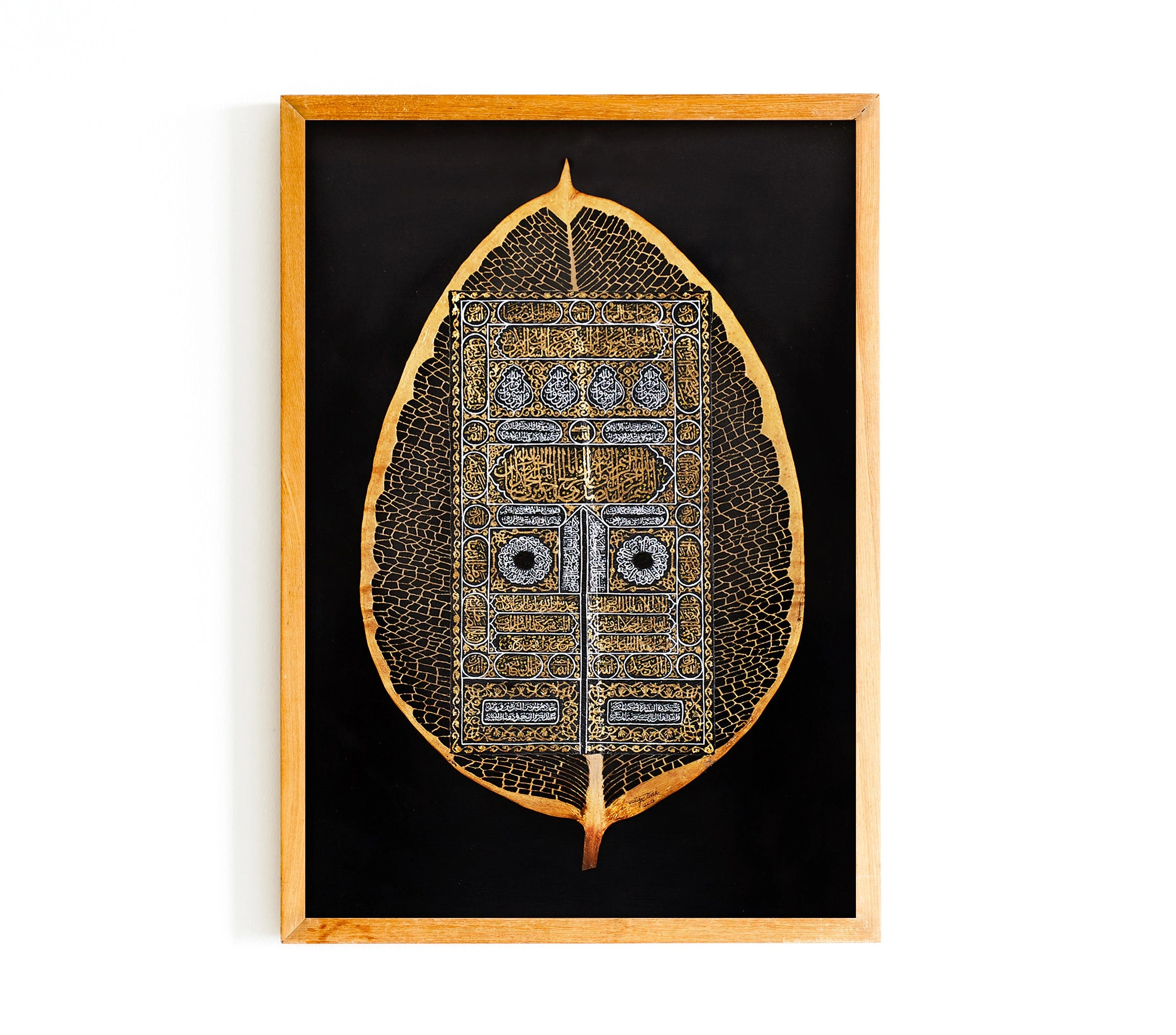 • Organik kauçuk ağacı yaprağı, akrilik boya ve altın varak