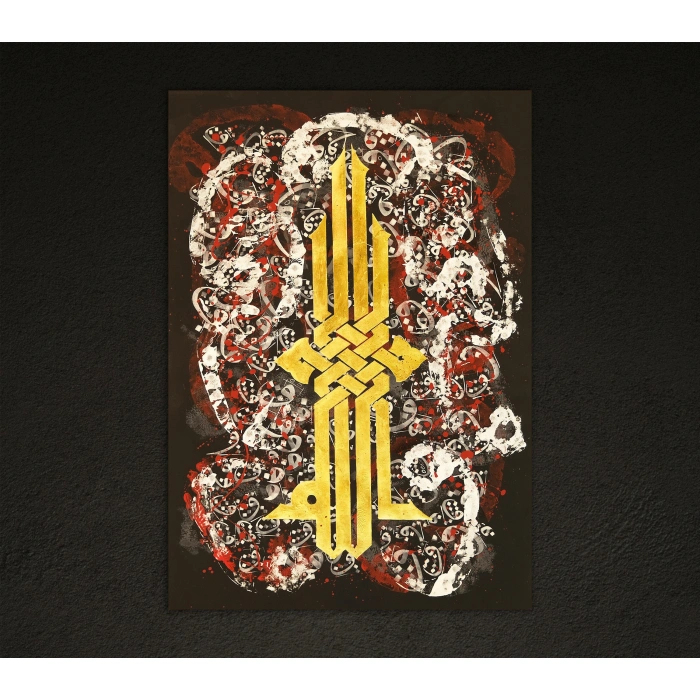 Siyah renkli doğal kağıt üzerine abstrakt hat arka planı üzerinde altın varakla işlenmiş "Allah" modern Kufi kaligrafi sanatı nereye asarsanız asın sizi zerafet ve güzellik dünyasına davet ediyor. Bu modern parça Allah'a ve İslam'a olan derin inancınızın ve bağlantınızın güzel bir hatırlatıcısıdır. Detaylara gösterilen özenle el yapımı olan bu duvar sanatı, her ev için İslami duvar sanatının enfes bir parçası haline gelecek. Bu İslami tuval sanatı elle boyanmıştır ve sonuç, evinizin her odasında harika görünecek, şaşırtıcı derecede canlı bir duvar dekorudur. Renkler solmaya ve çatlamaya karşı dayanıklıdır. Sanat eserinin merkezinde modern kaligrafi tarzı 'Allah' yazılıdır ve bu İslami duvar sanatı eserini gerçekten öne çıkarır. Tasarım, her duvarı süslemek için zamansız bir İslami tuval sanatı parçası yaratan modern ve geleneksel estetiği birleştiriyor.