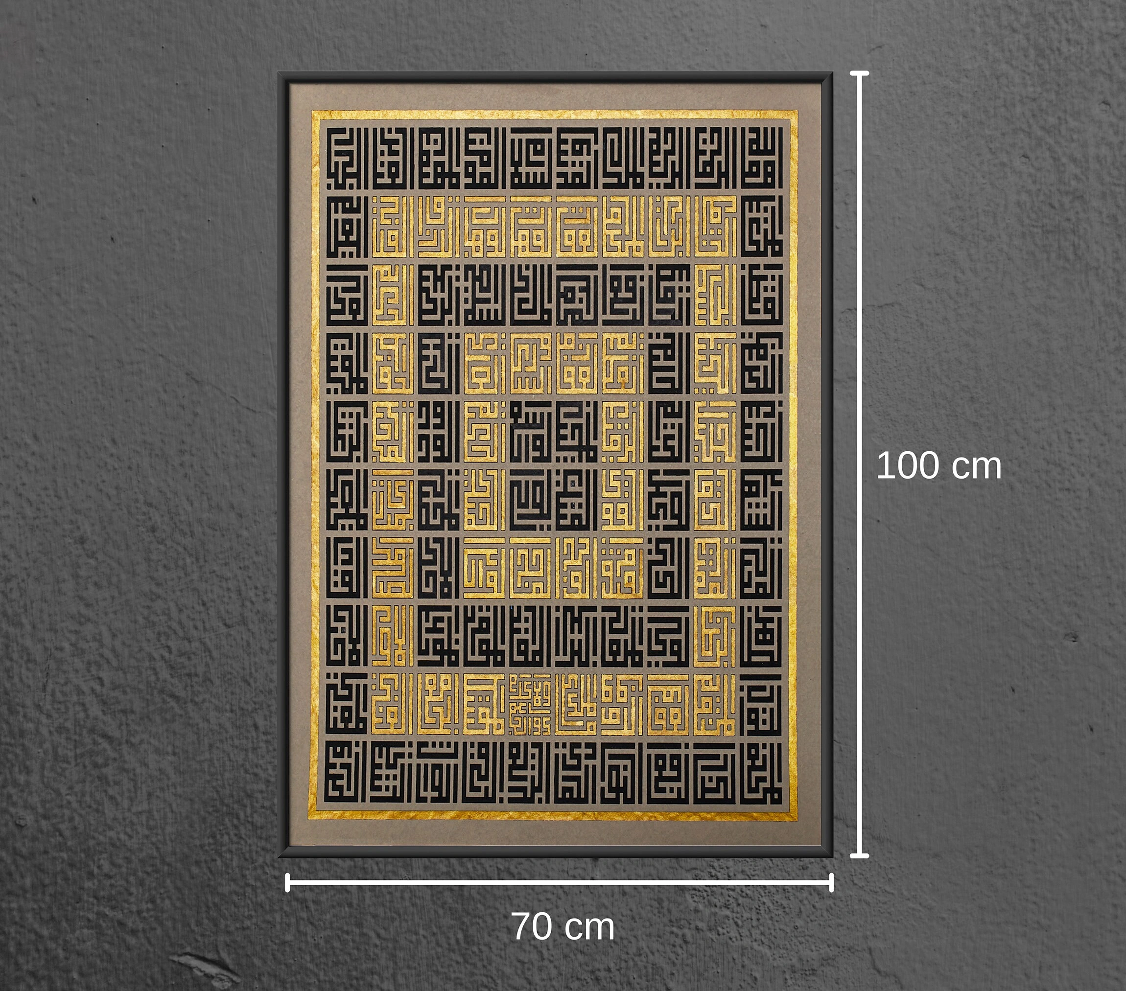 Kufi Esma Ül Hüsna Altın Varak Detaylı İslami Tablo 70x100 cm
