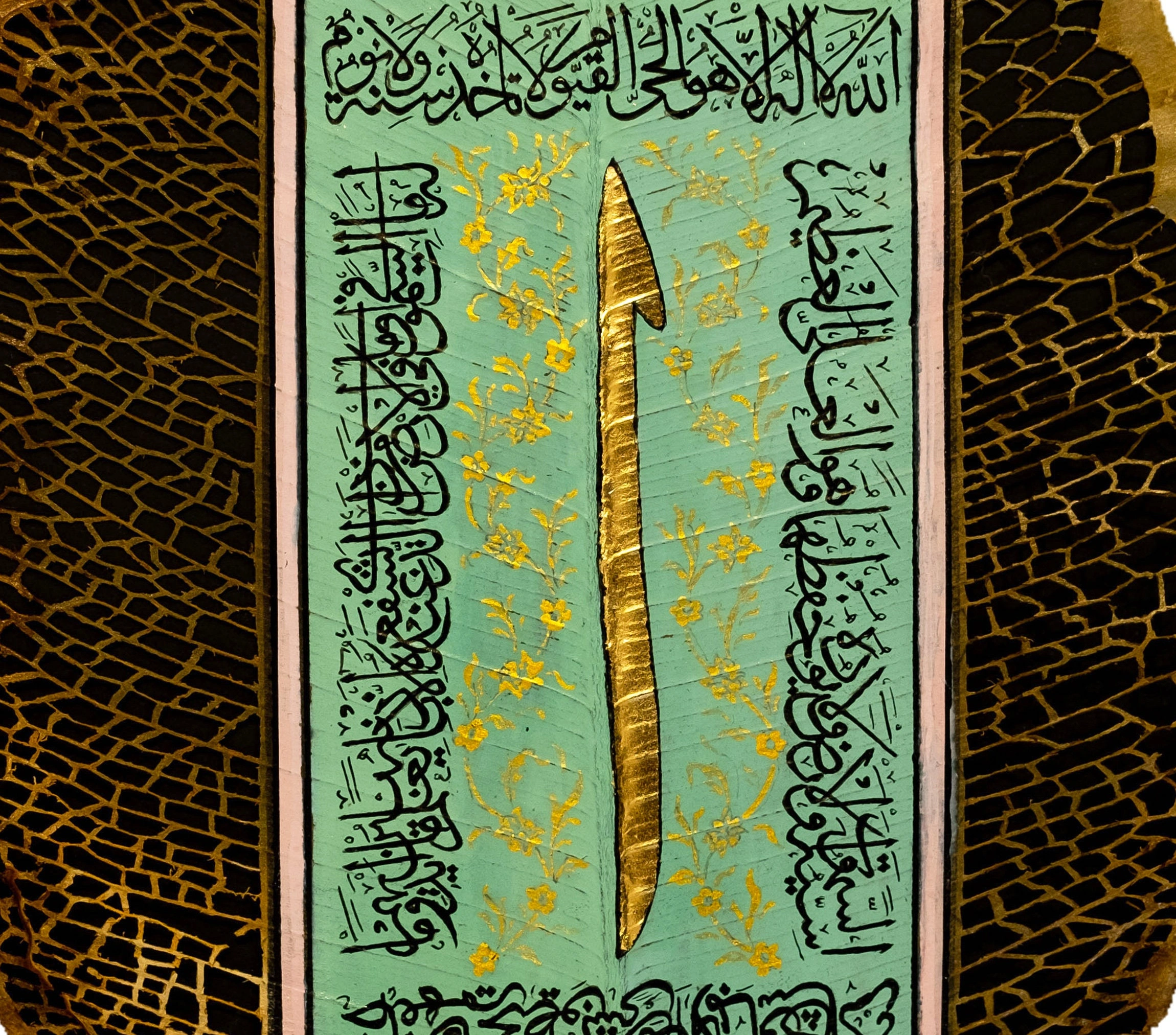 Tezhip Süslü Elif Vav Yaprak Oyma Sanatı 20x33cm